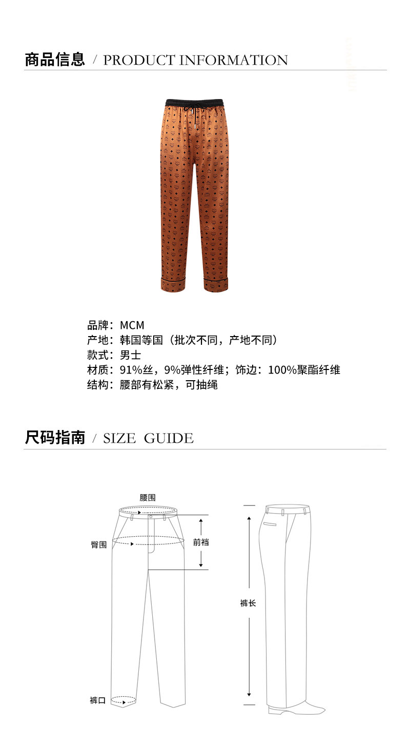 MCM/MCM 男睡衣/家居服 男士丝质居家长裤睡裤LOGO图案 MHXBSMM09