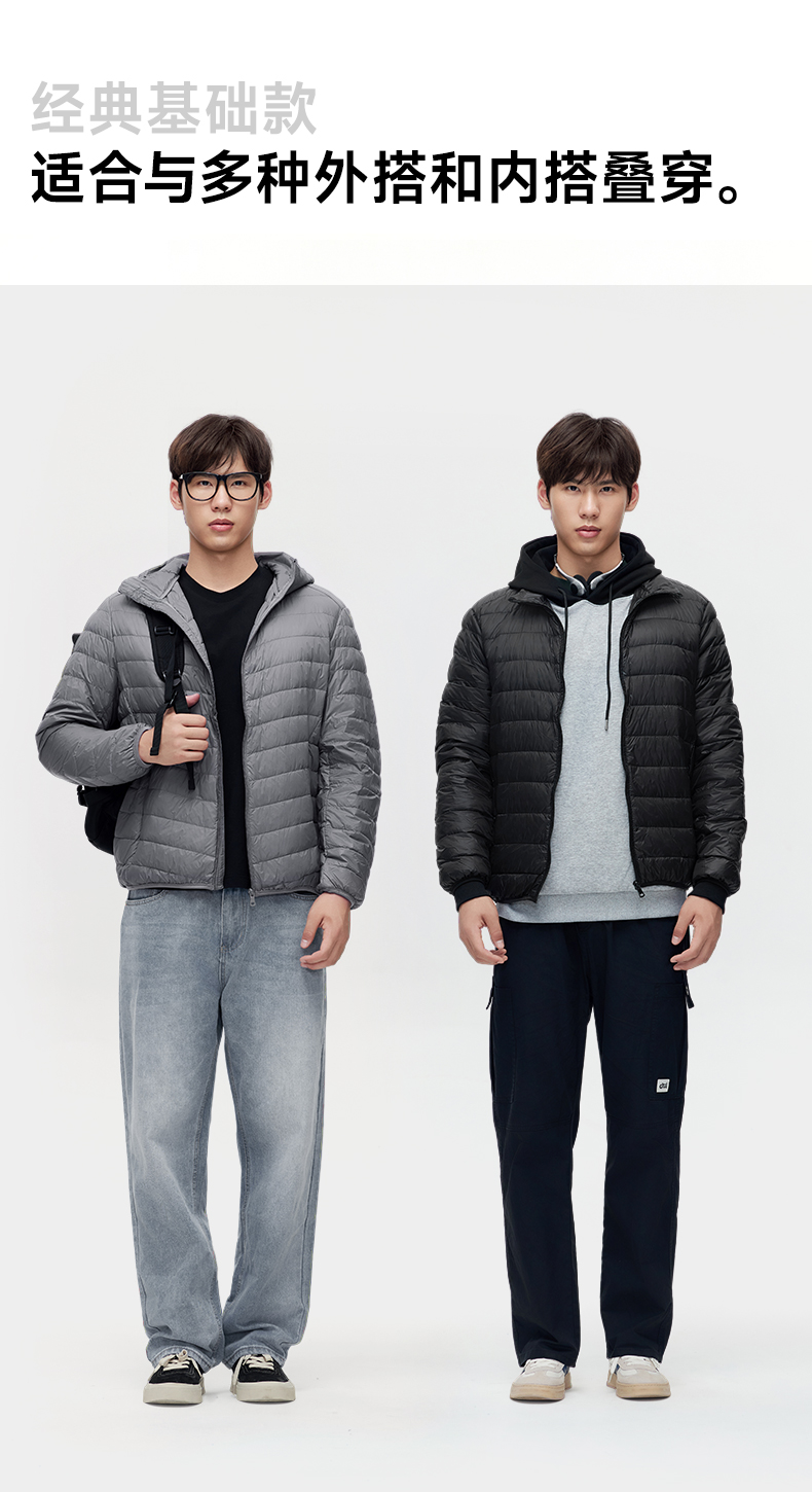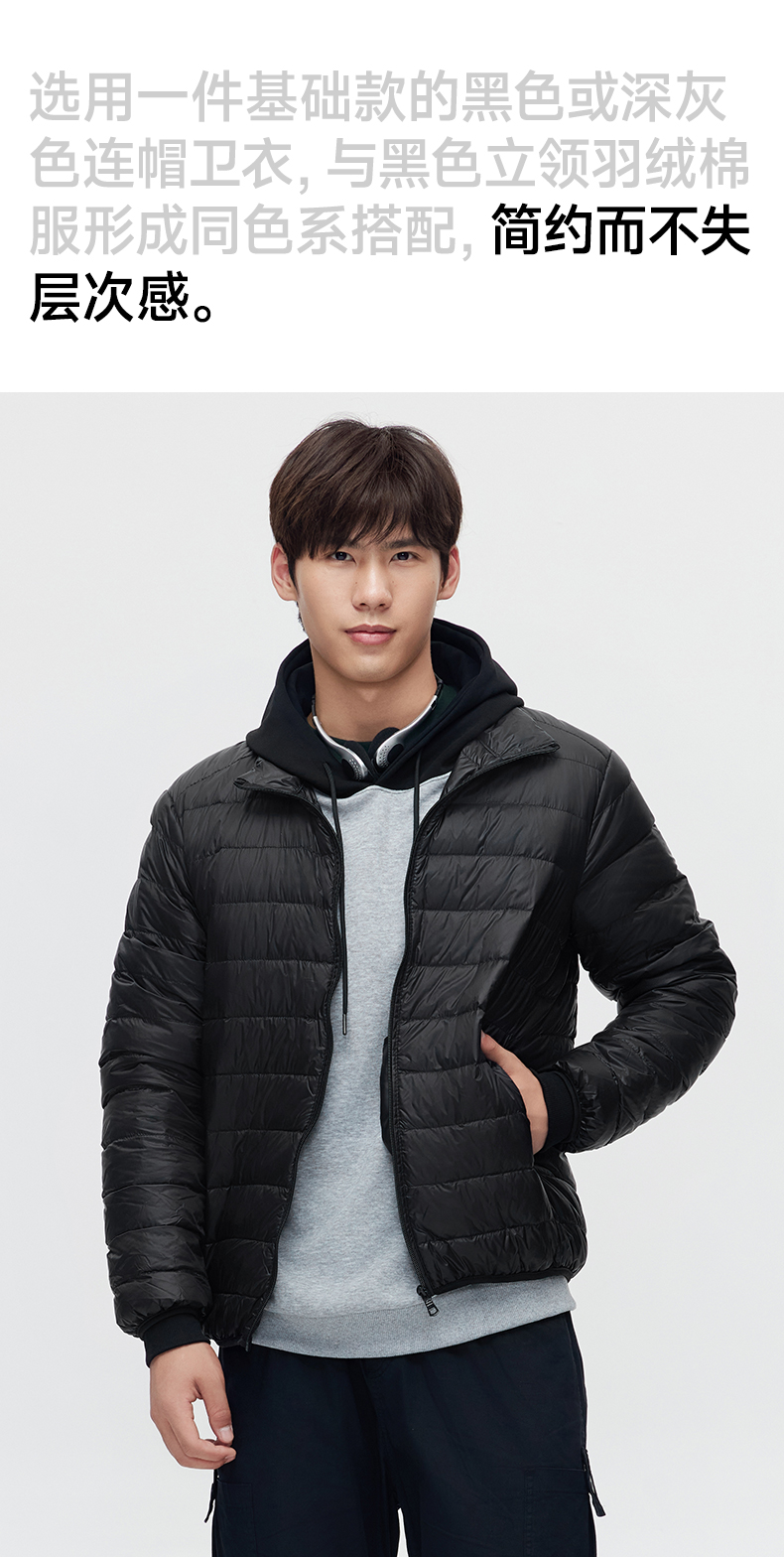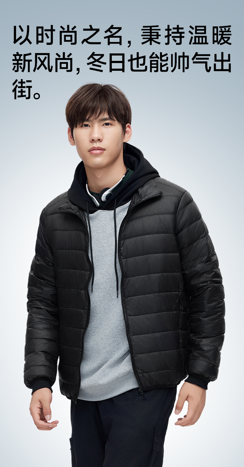 赤兔嗨购轻薄羽绒服男2024年冬季新款立领连帽修身运动短款鸭绒保暖外套