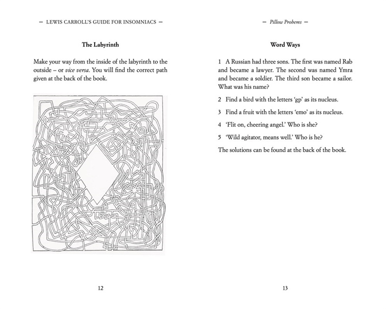 ‘The dilemma my friends suppose me to be in,’ writes the author of Alice's Adventures in Wonderland, ‘has, for its two horns, the endurance of a sleepless night, and the adoption of some recipe for inducing sleep.’ In this delightful book – the gift for all insomniacs – are collected a splendid variety of entertainments devised to help pass 'the wakeful hours'. Ranging from puzzles, rhymes and limericks to simple number problems and calming calculations; from composing rhymes to planning dreams, here is a feast of intriguing activities guaranteed to keep you entertained as you search for the elusive rabbit-hole of a good night’s sleep.