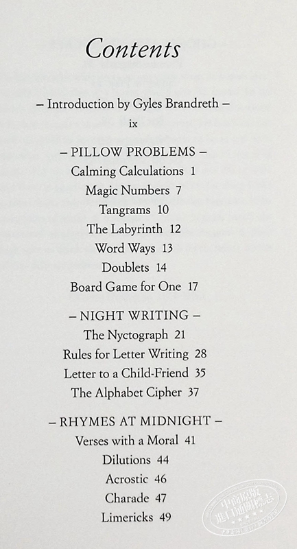 《爱丽丝梦游仙境》的作者写道:“我的朋友们认为我陷入的困境,是因为它的两个角,能够忍受一个不眠之夜,并采用一些诱导睡眠的方法。” 这本书是送给所有失眠症患者的礼物,书中收录了各种精彩的娱乐内容,旨在帮助他们度过“清醒的时光”。 从谜题、押韵和打油诗到简单的数字问题和平静的计算; 从创作童谣到规划梦想,这里有一系列有趣的活动,保证让您在寻找一夜好眠的难以捉摸的兔子洞时感到开心。