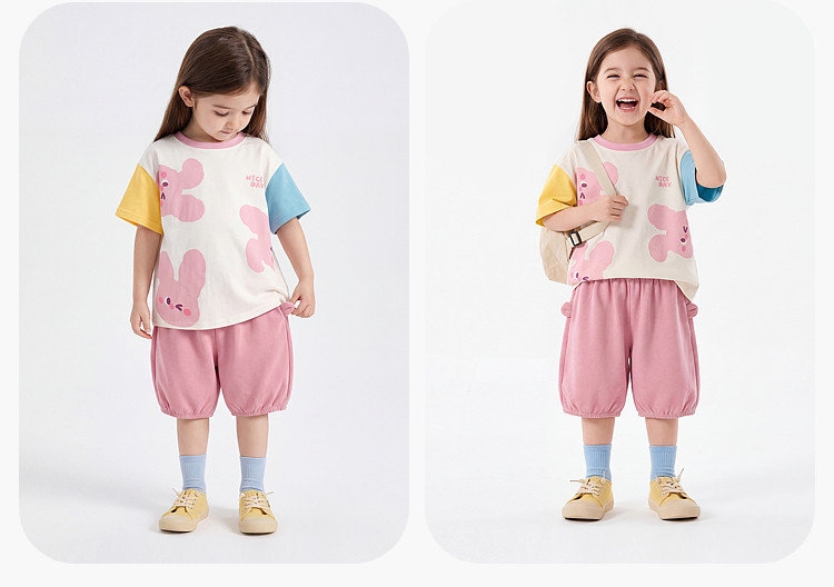嘟嘟家儿童套装夏季男童T恤短裤轻薄款女童短袖裤子宝宝上衣童装D6BTZ210