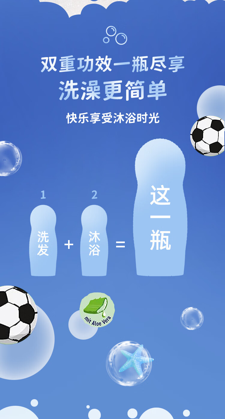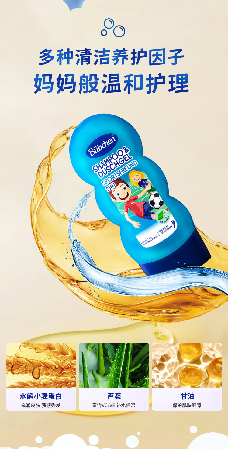贝臣运动男孩洗发沐浴露230ml/118014 不油不臭无泪配方