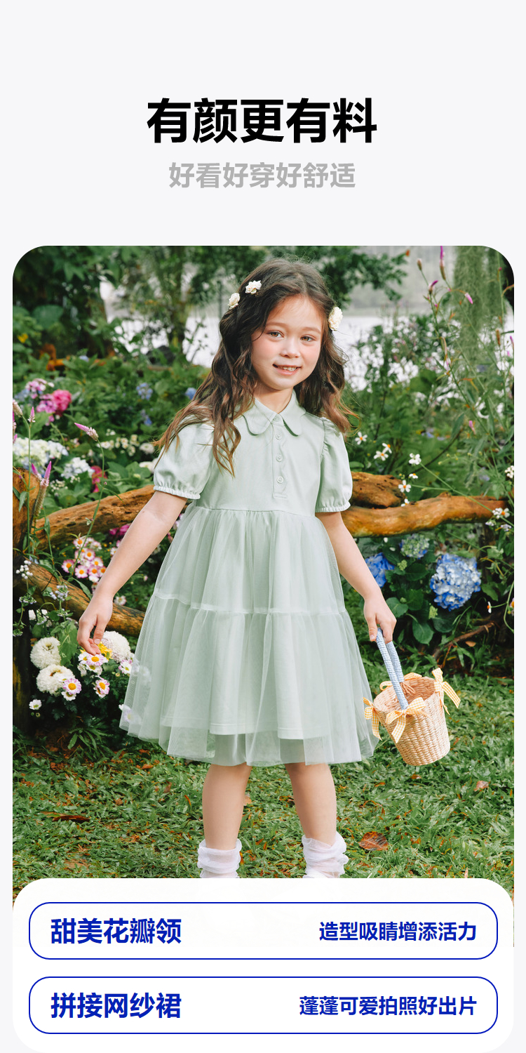 【棉感速干】迷你巴拉女童连衣裙儿童夏季甜美网纱蓬蓬公主裙