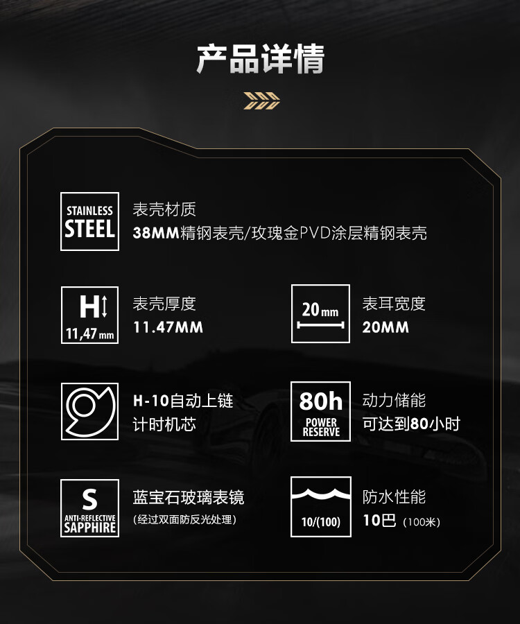 | 机芯 | 自动机械 H-10 80小时动力储备 | 表径 | 38 mm |
