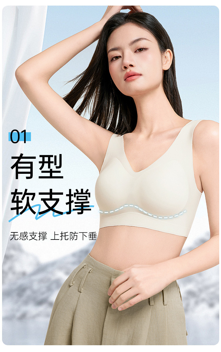 忆夏浅浅 舒适文胸(VIP)【轻薄无痕 凉感内衣】透气无钢圈粉底液隐形聚拢美背内衣