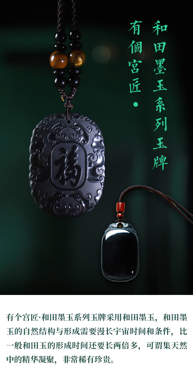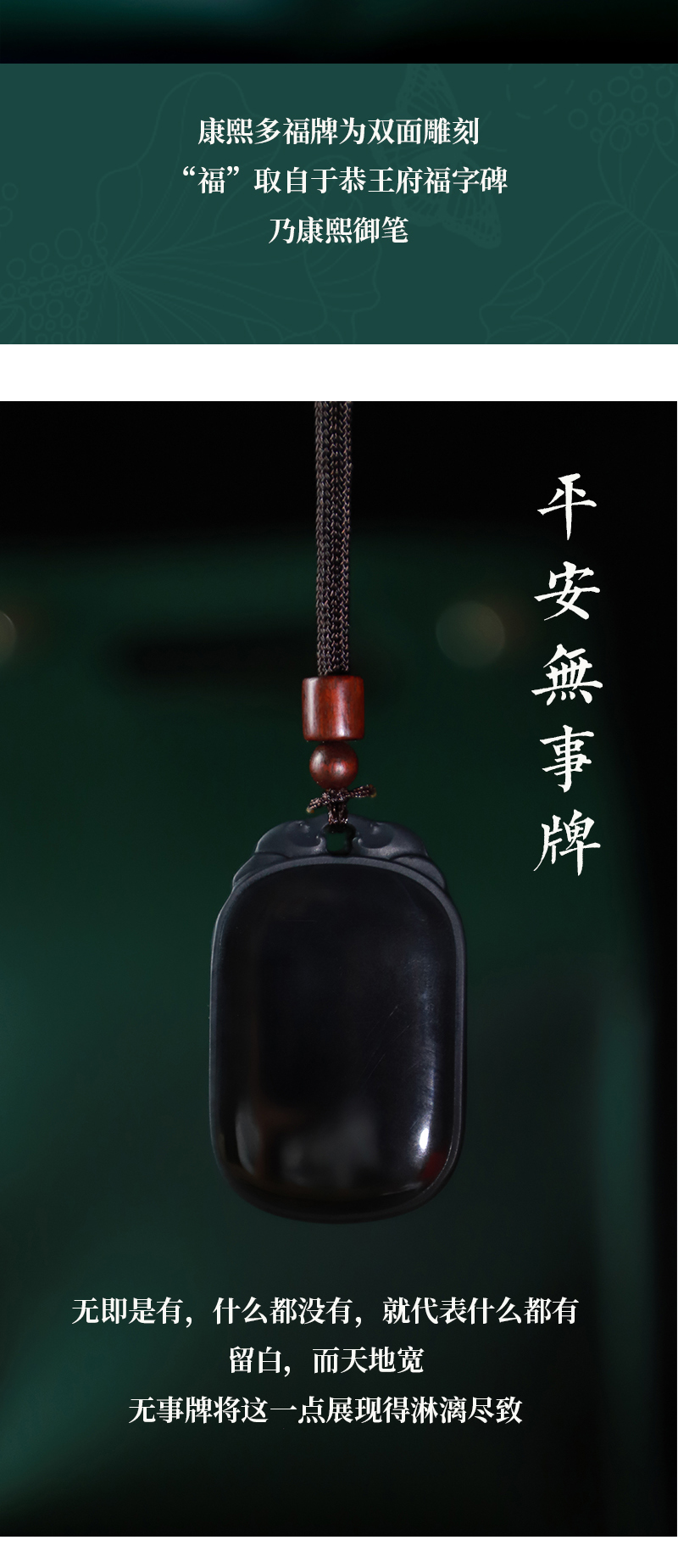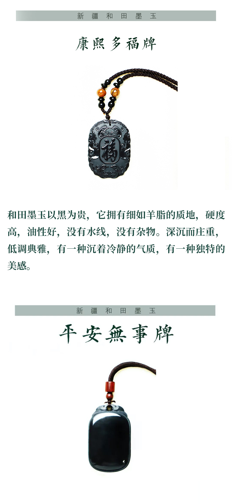 有个宫匠●和田墨玉系列 康熙多福牌 平安无事牌 新疆和田墨玉 镯芯玉料