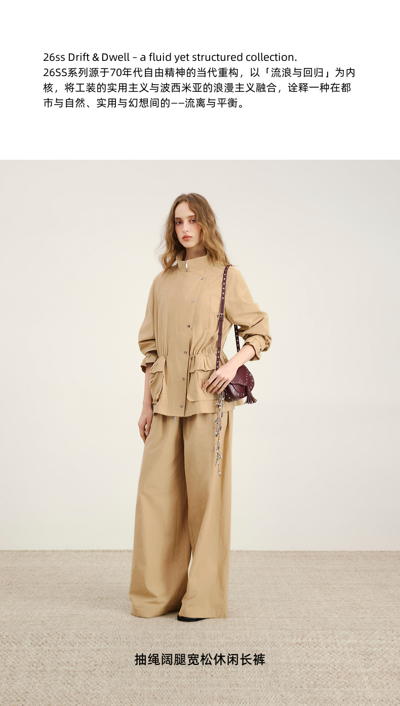 lost in echo2026年春夏新款时髦休闲宽松抽绳阔腿宽松及地长裤女