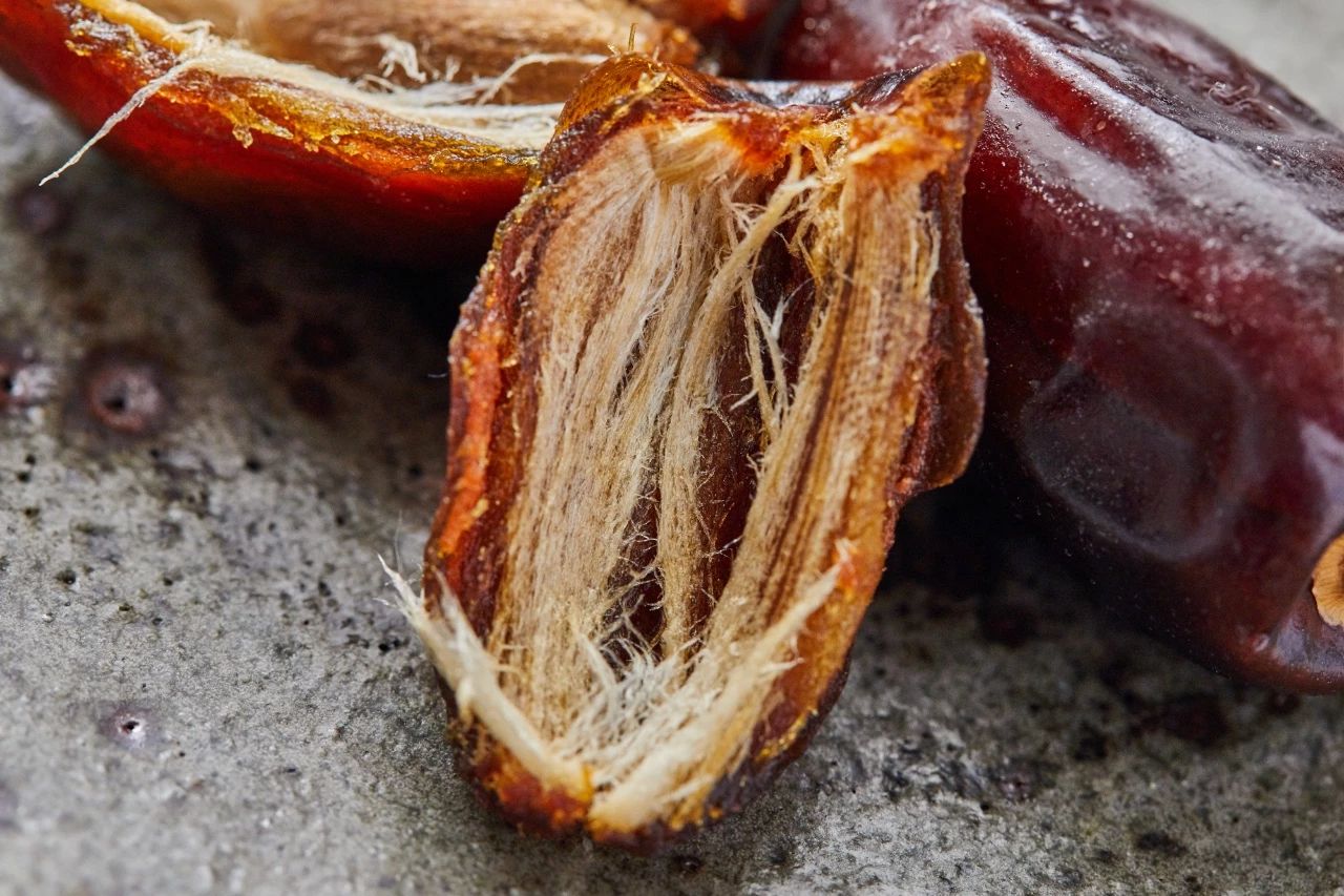 注:丝状只是椰枣的果肉纤维形态,口感一点儿也不干柴,反而非常软糯。