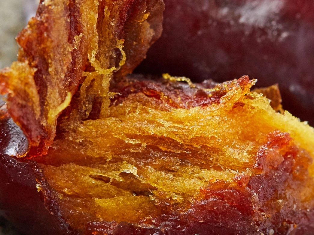 轻咬开果皮,就可以吃到糯糯的、沙沙的果肉,口感是很多干硬果干所不能比的。