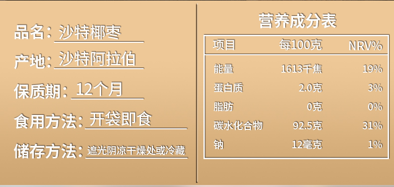【产品名称】沙特椰枣 特级4.0cm以上果