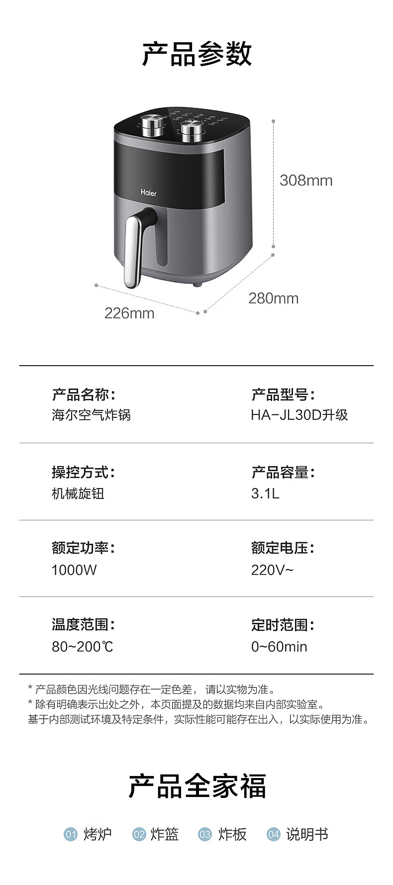 海尔空气炸锅大容量家用煎炸锅HA-JL30D升级