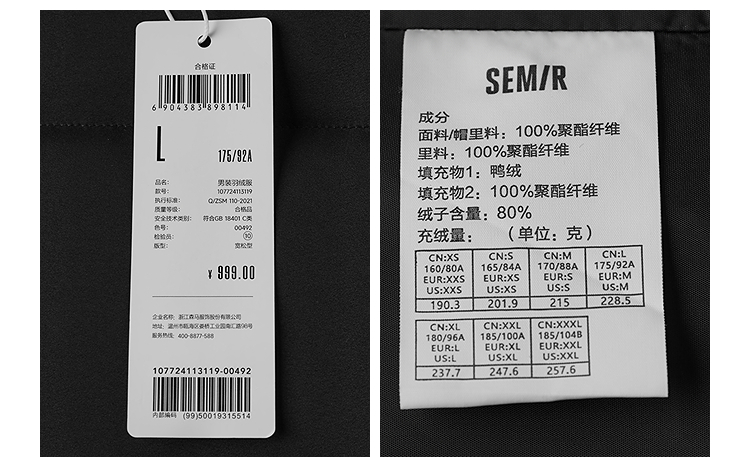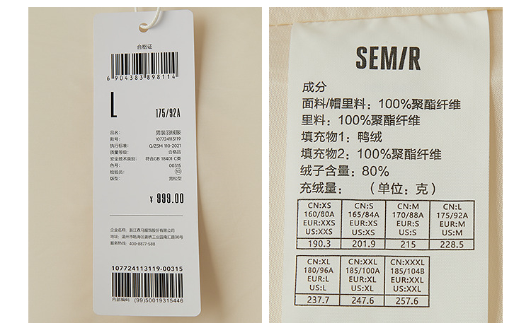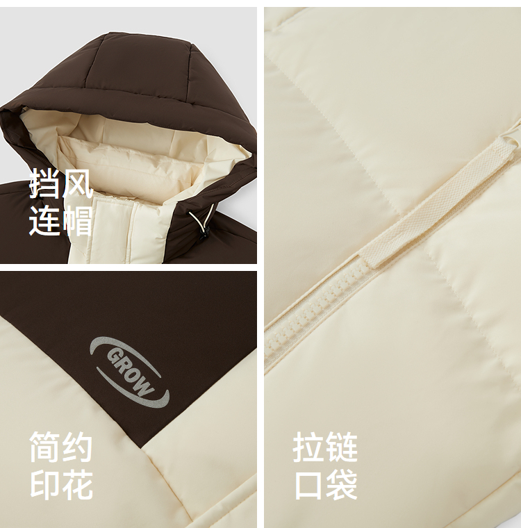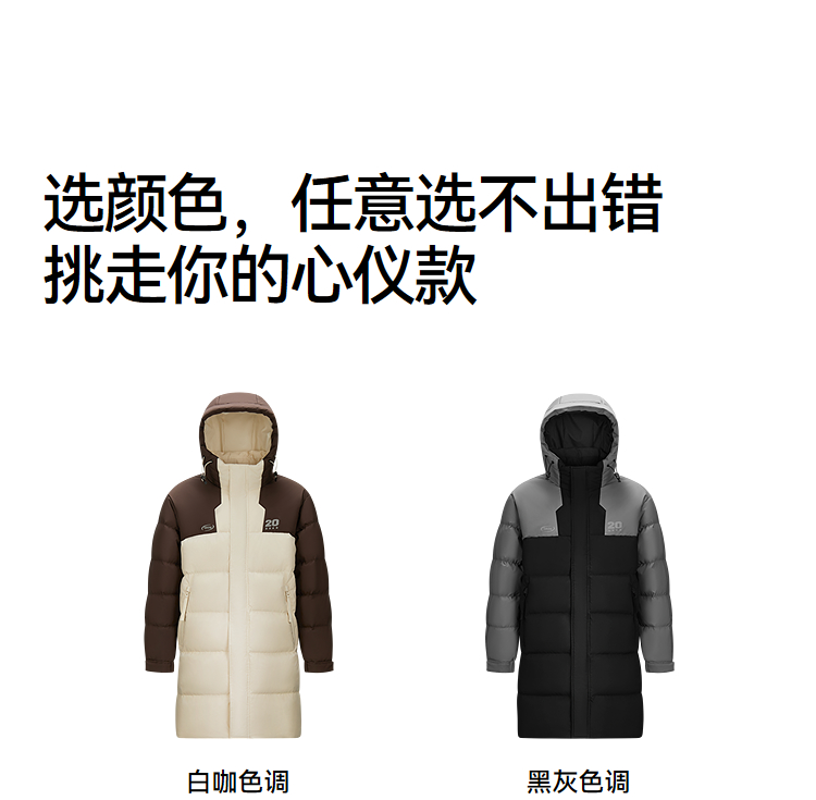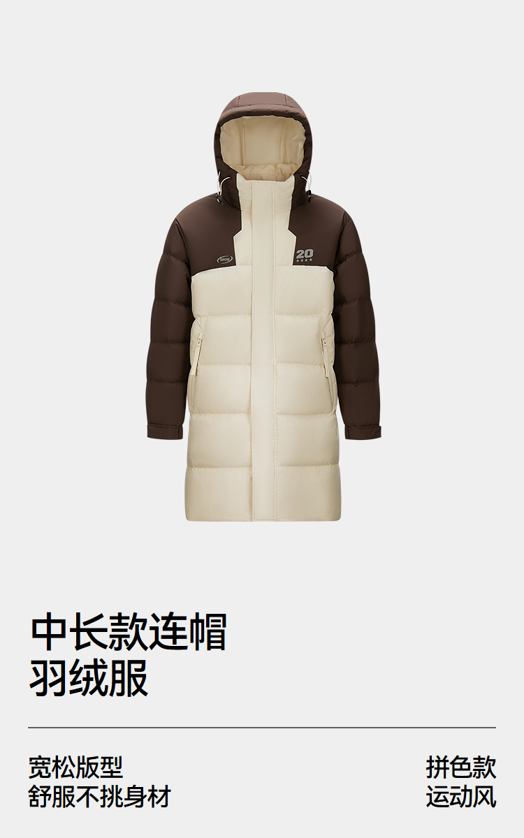 森马羽绒服男冬装80绒子中长款连帽外套宽松运动风拼色上衣时尚潮