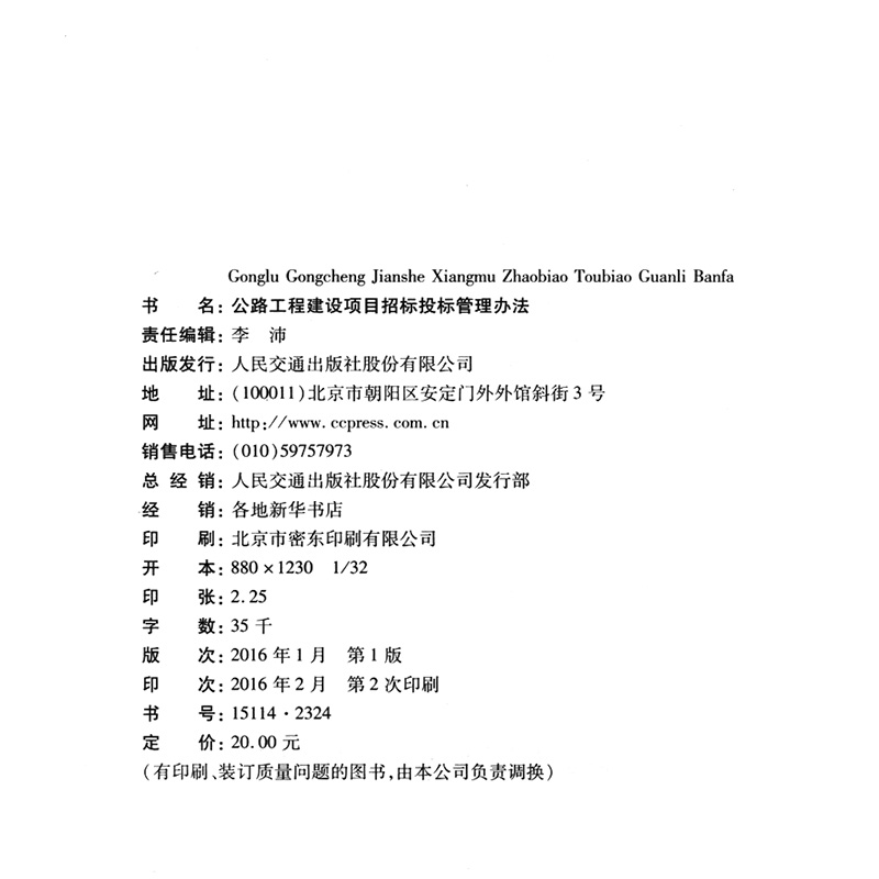书名:公路工程建设项目招标投标管理办法