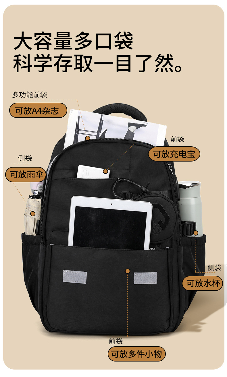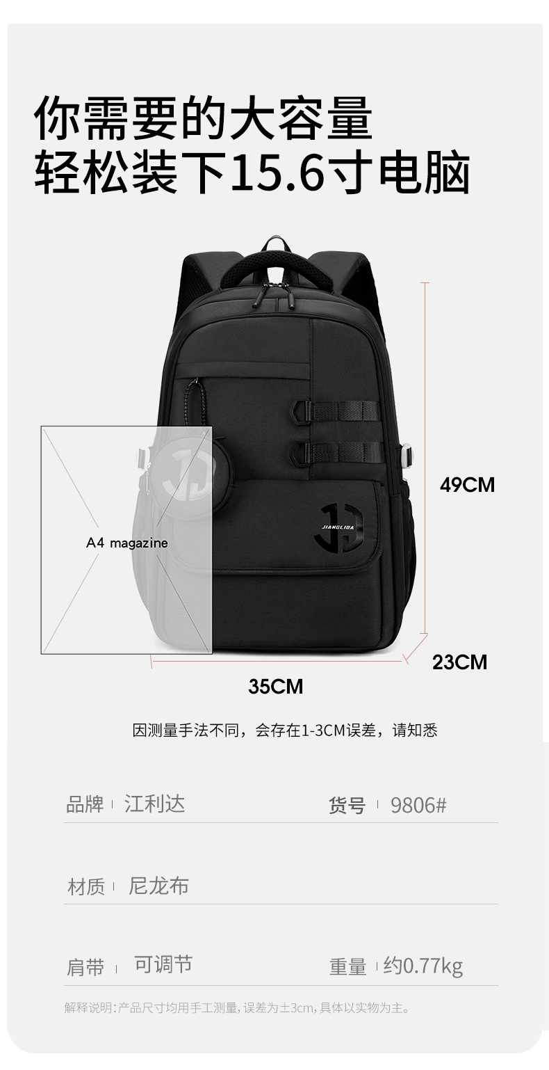 男生初高中高级感双肩包 轻便背包大容量耐脏大学生书包简约通用电脑包