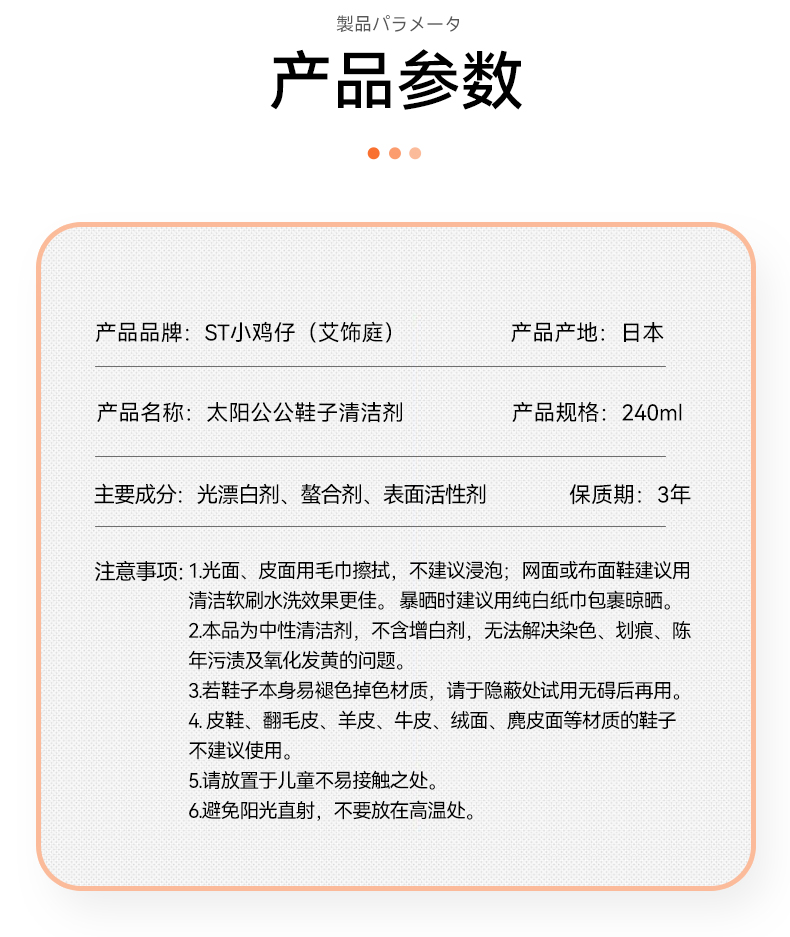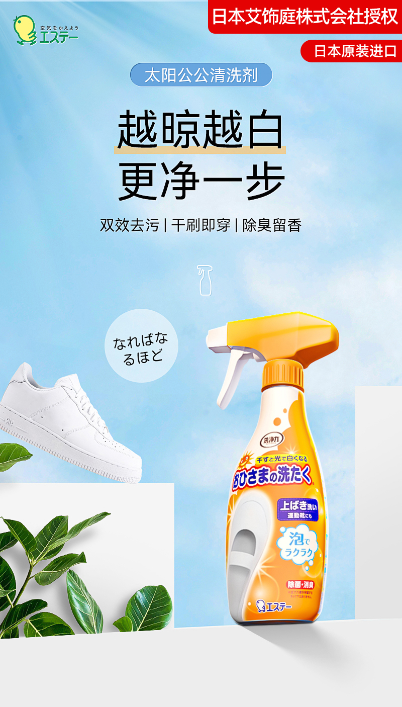 【中欧班列优选】日本进口 st小鸡仔艾饰庭小白鞋清洗剂擦刷鞋子洗鞋神器去污鞋靴活氧清洁剂 240ml