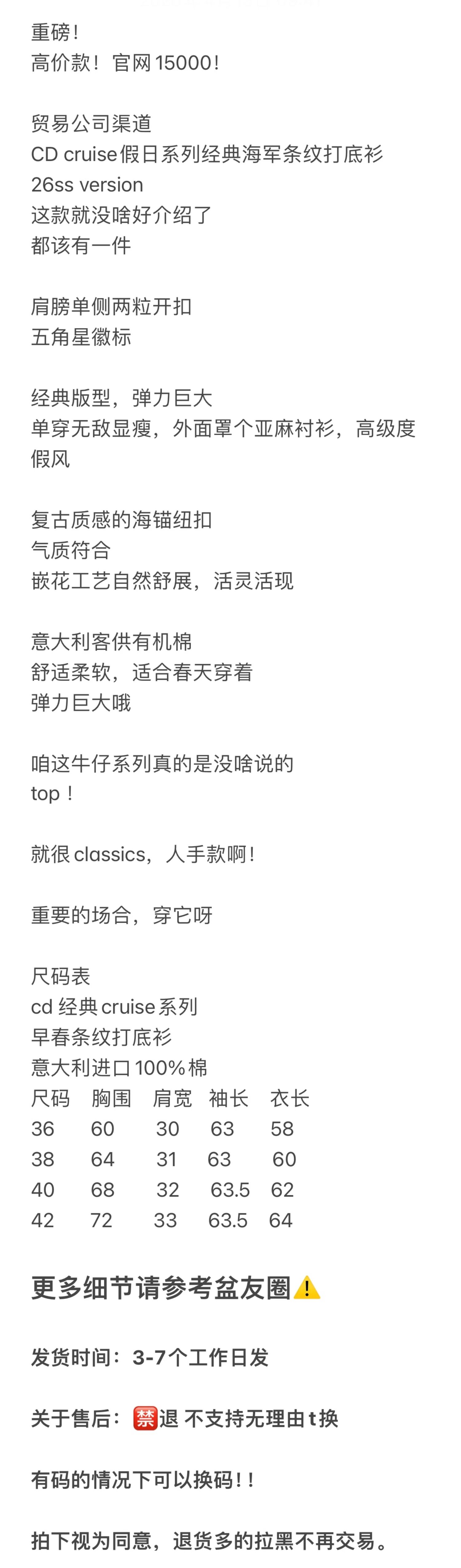 重磅渠道 CD经典海军条纹长袖针织衫 意大利进口纯棉针织 cruise假日系列