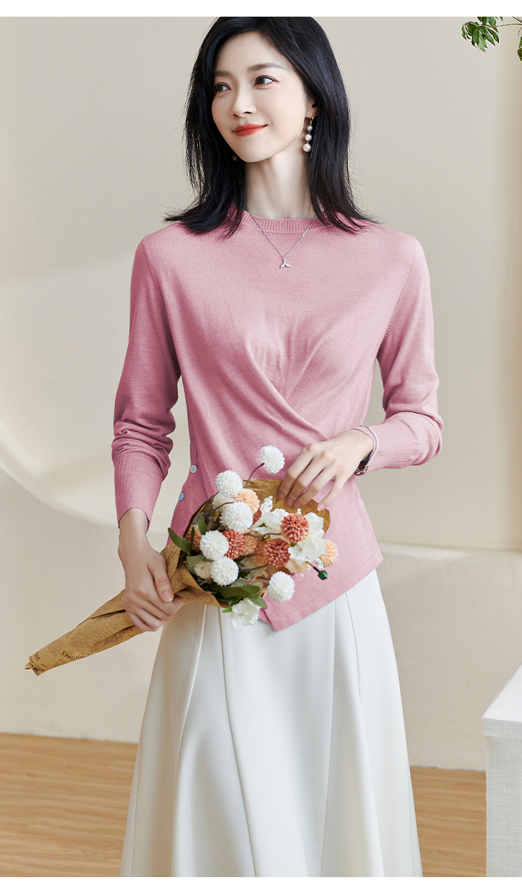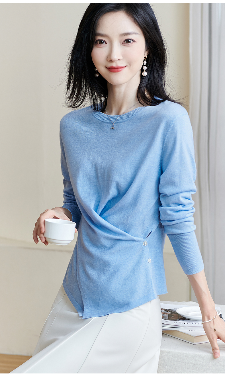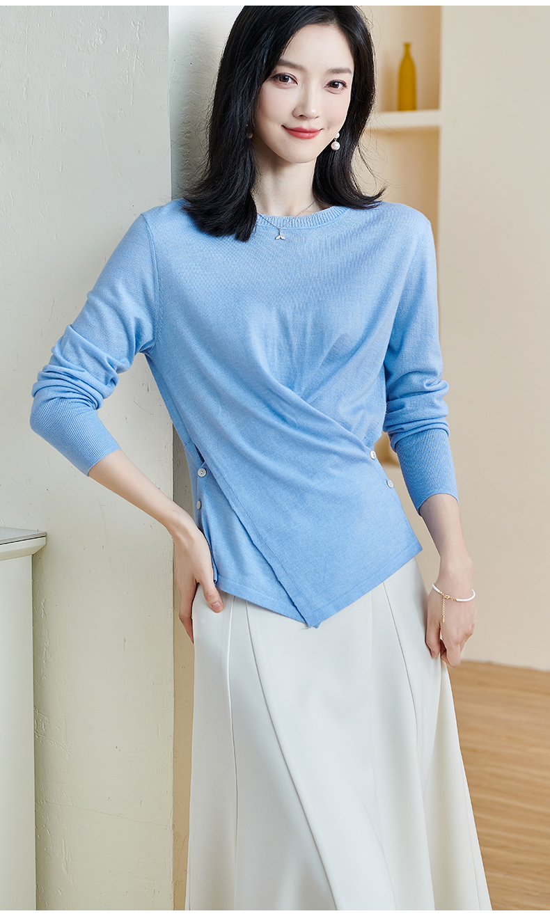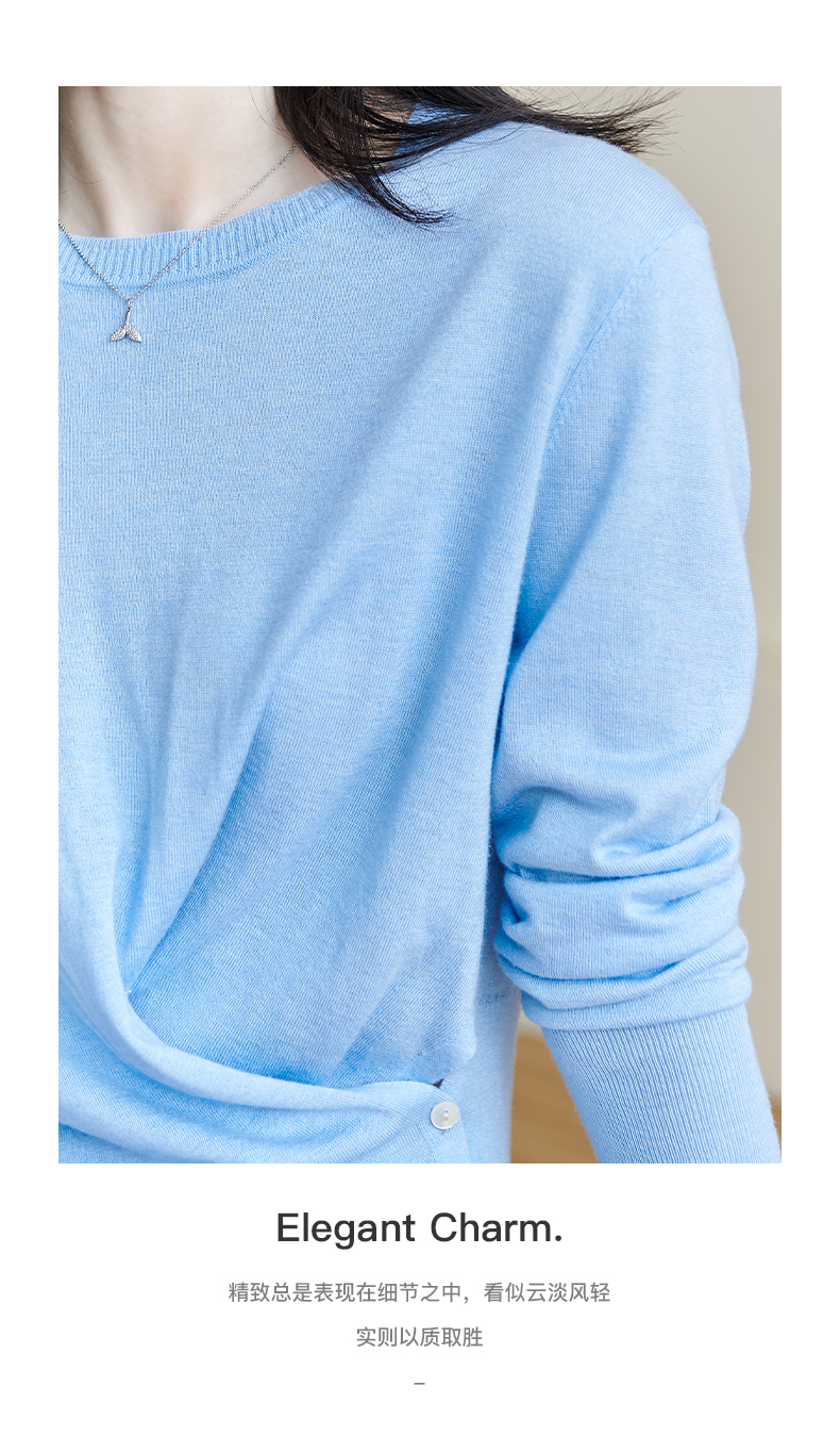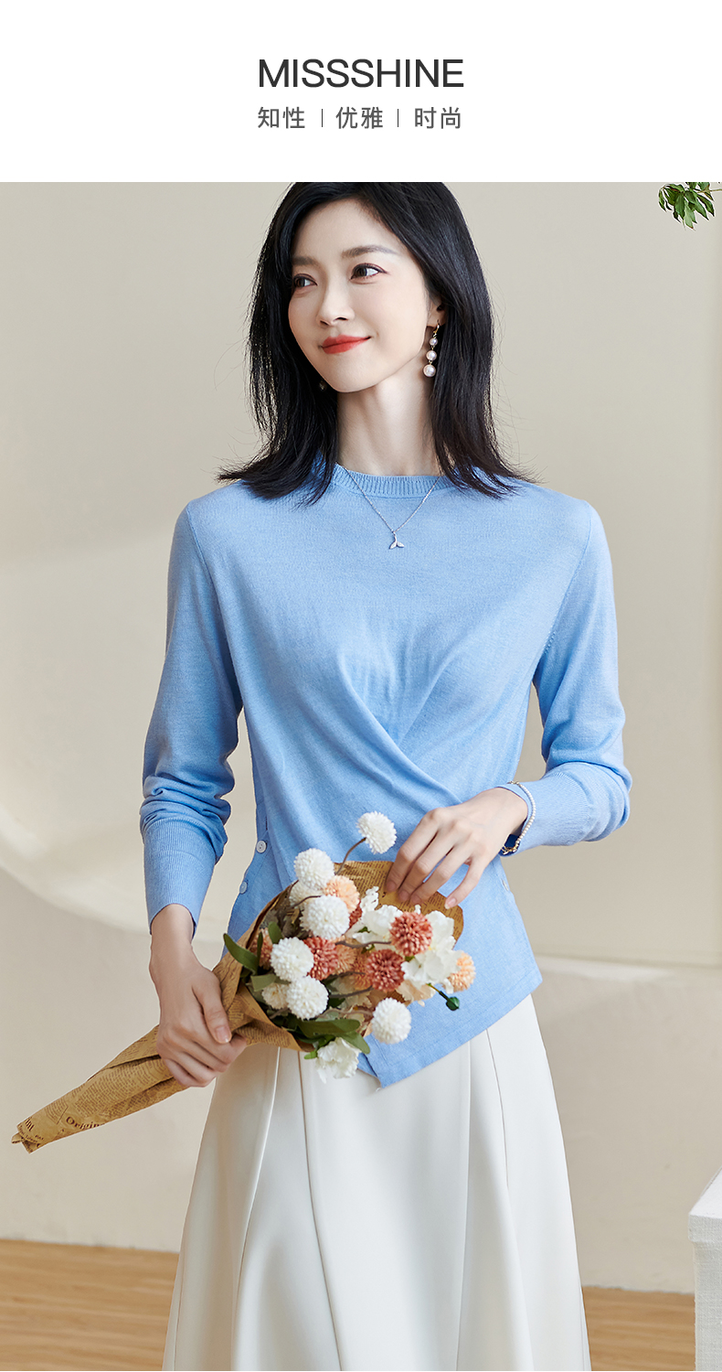 【羊毛设计感针织衫】米思阳2026春季新款时尚设计感纯色针织衫圆领长袖羊毛上衣女2372