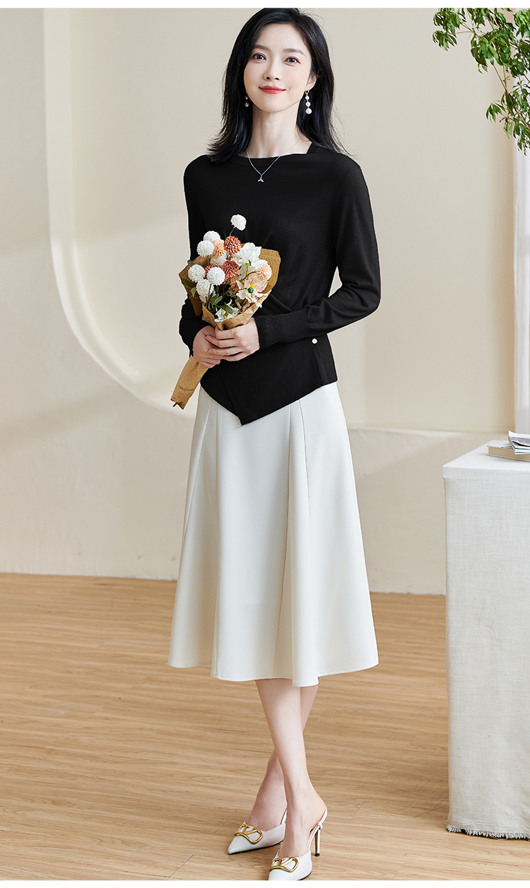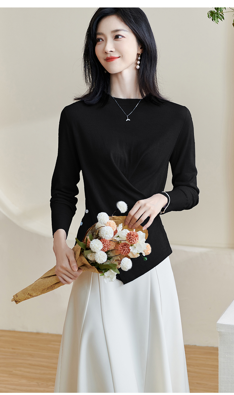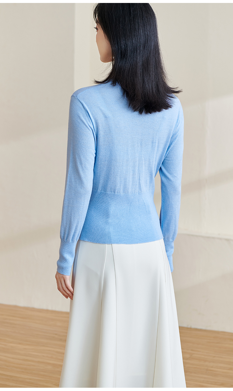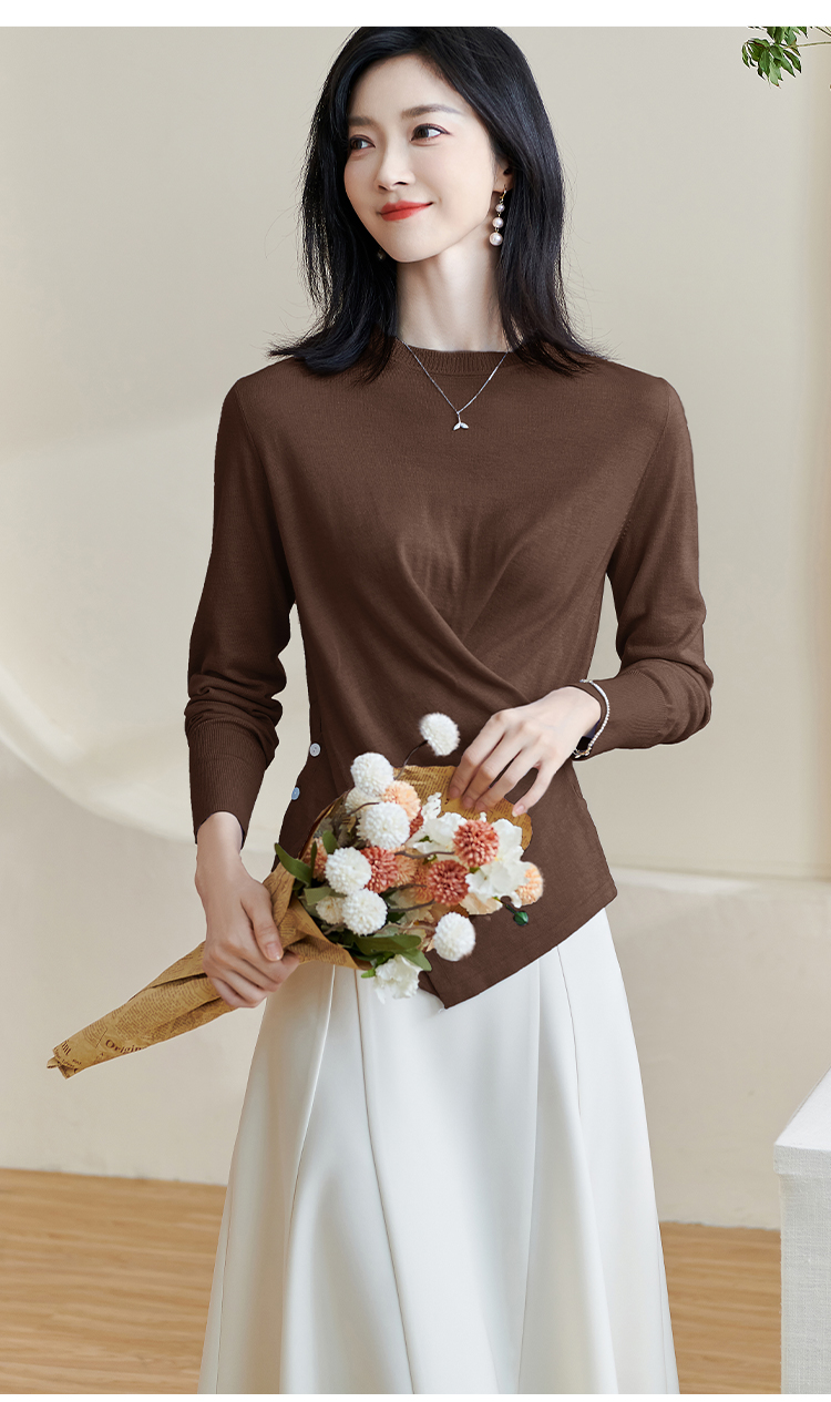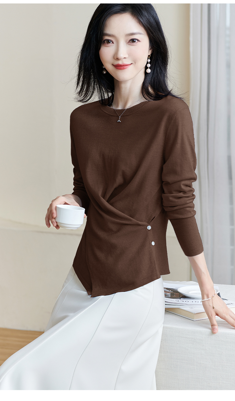 【羊毛设计感针织衫】米思阳2026春季新款时尚设计感纯色针织衫圆领长袖羊毛上衣女2372