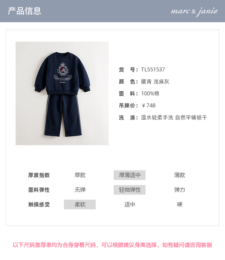 马克珍妮女童休闲学院运动套装儿童卫衣套装2025年秋装新款551537