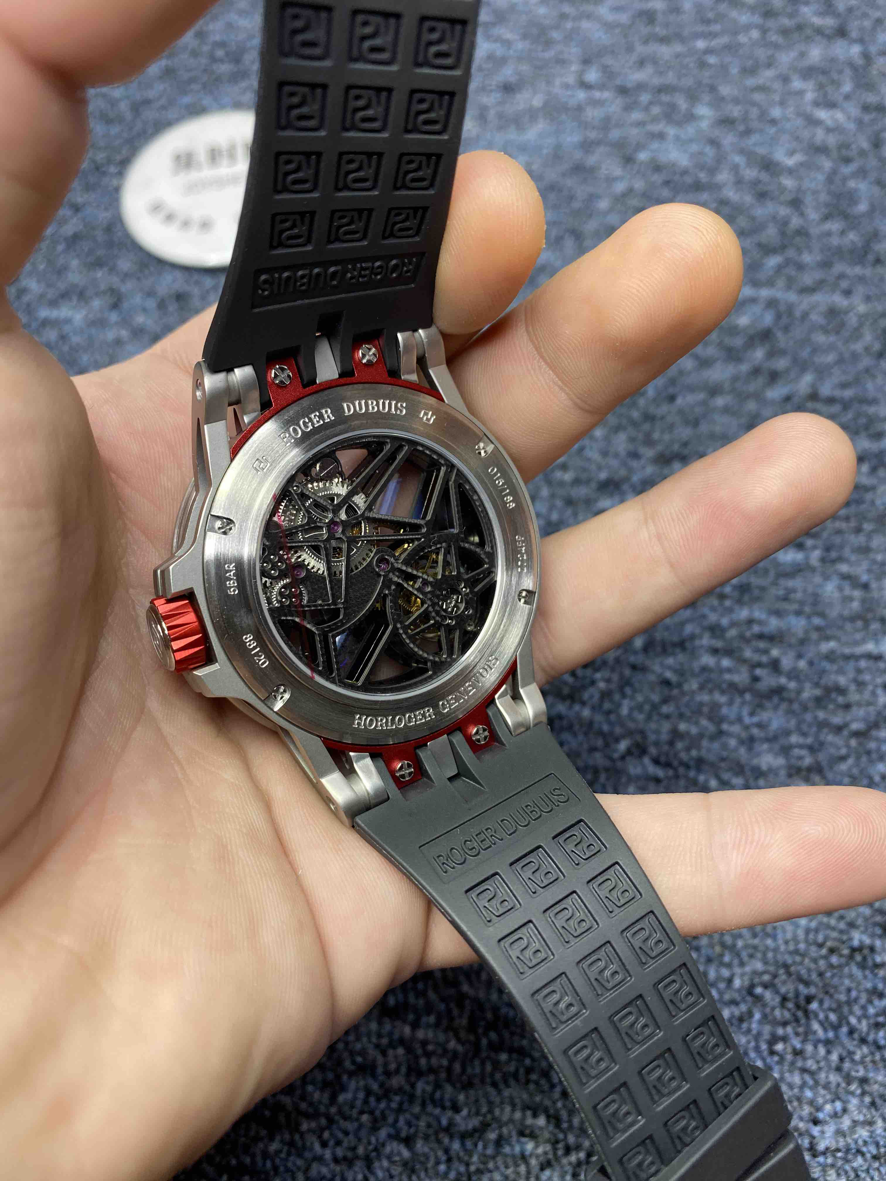 BBR陀飞轮机械机芯!钛金属罗杰杜彼EXCALIBUR(王者系列)型号:RDDBEX0479腕表,这款腕表极具罗杰杜彼品牌代表性的设计,星型的框架设计