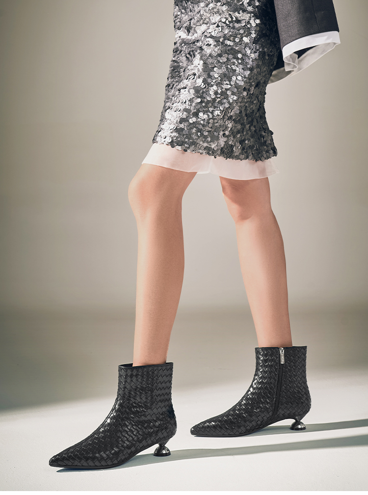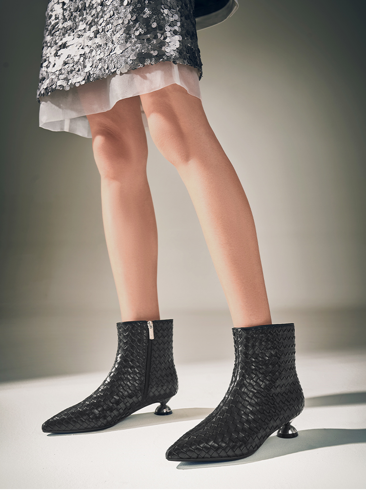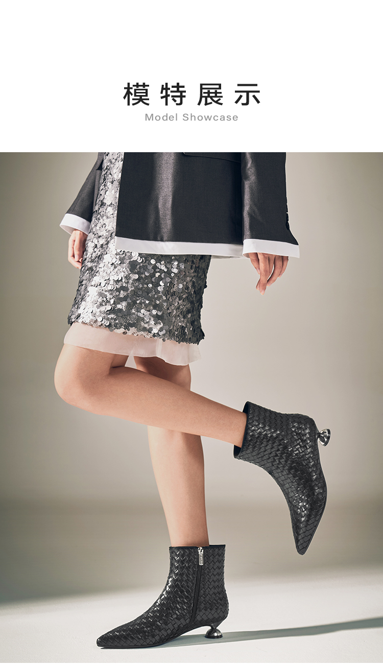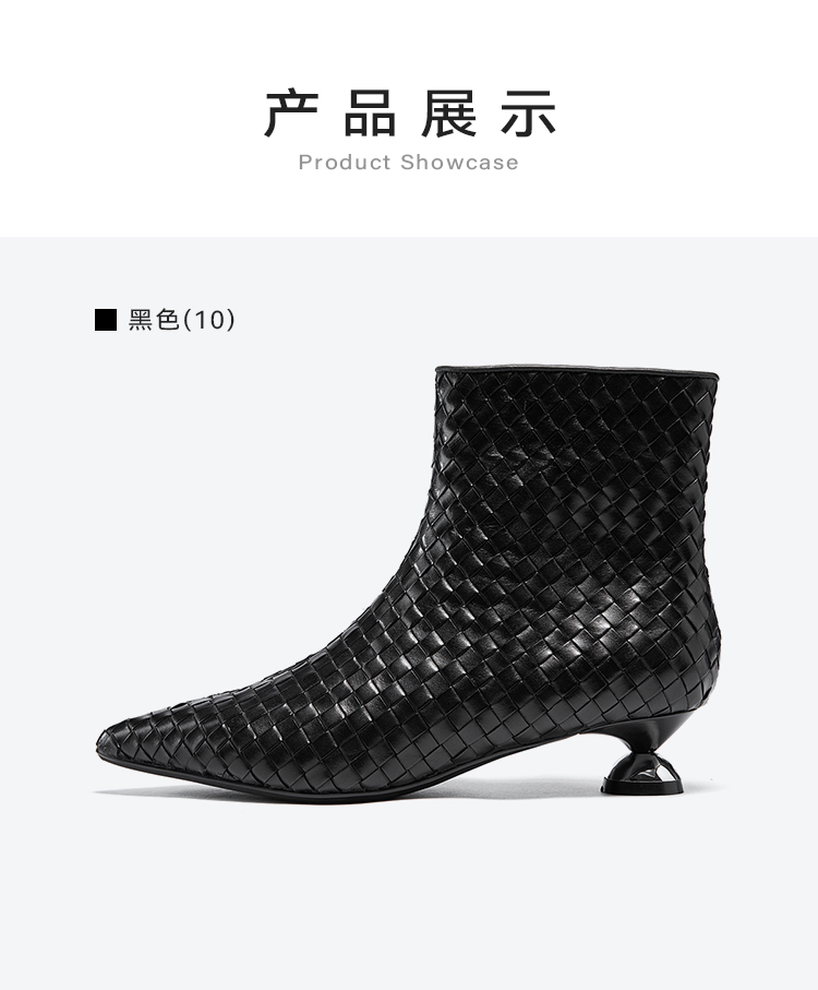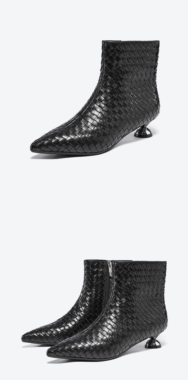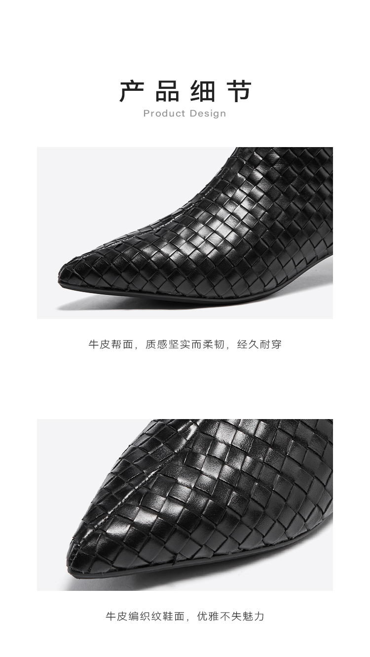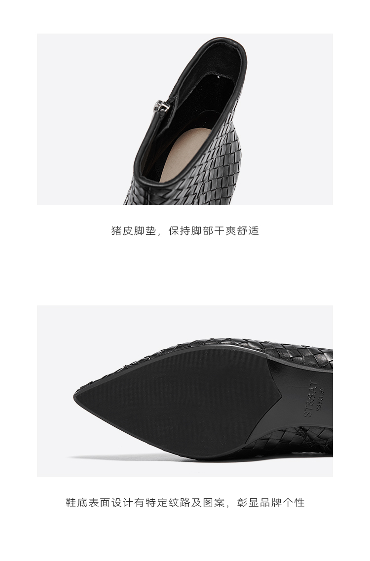 星期六法式尖头质感编织低跟时装靴SSC4116P1B