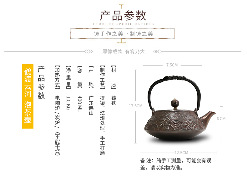铸味 | 0.4L水鹤壶铸铁茶壶生铁壶泡茶壶煮水壶手工铸造电磁炉适用