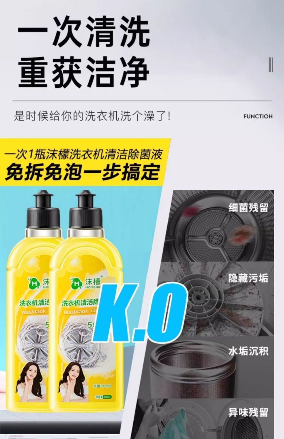 【抖音同款】沫檬洗衣机清洁剂除菌液母婴波轮滚筒通用深层清洁1.65