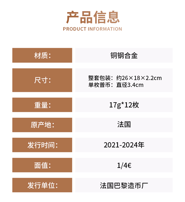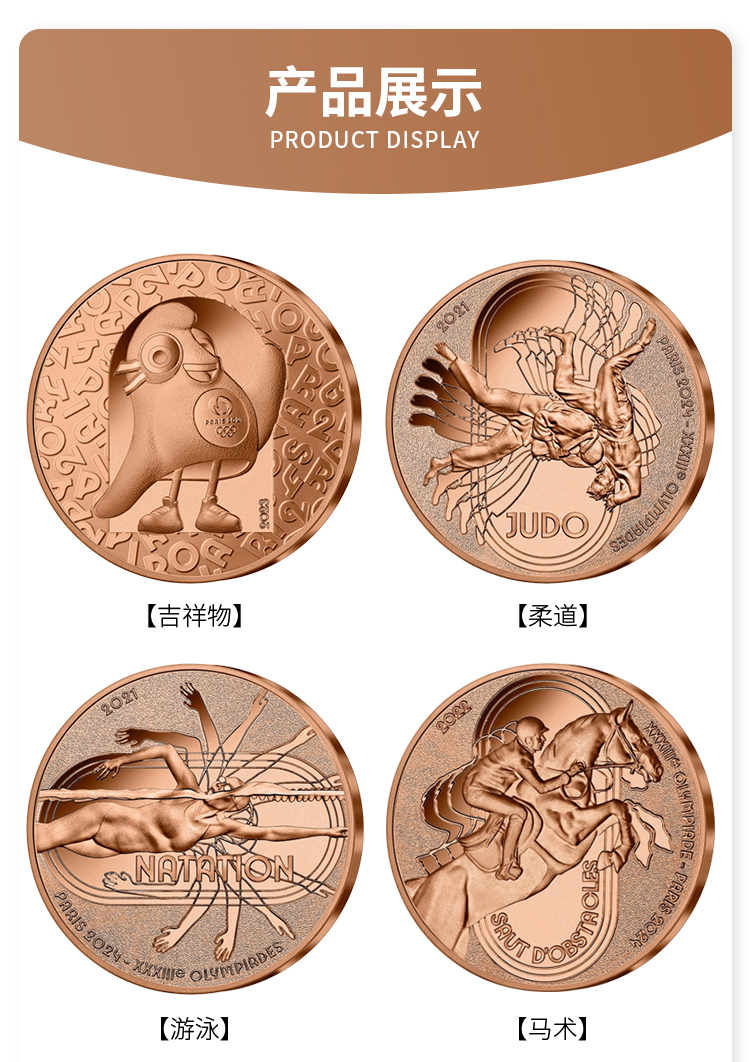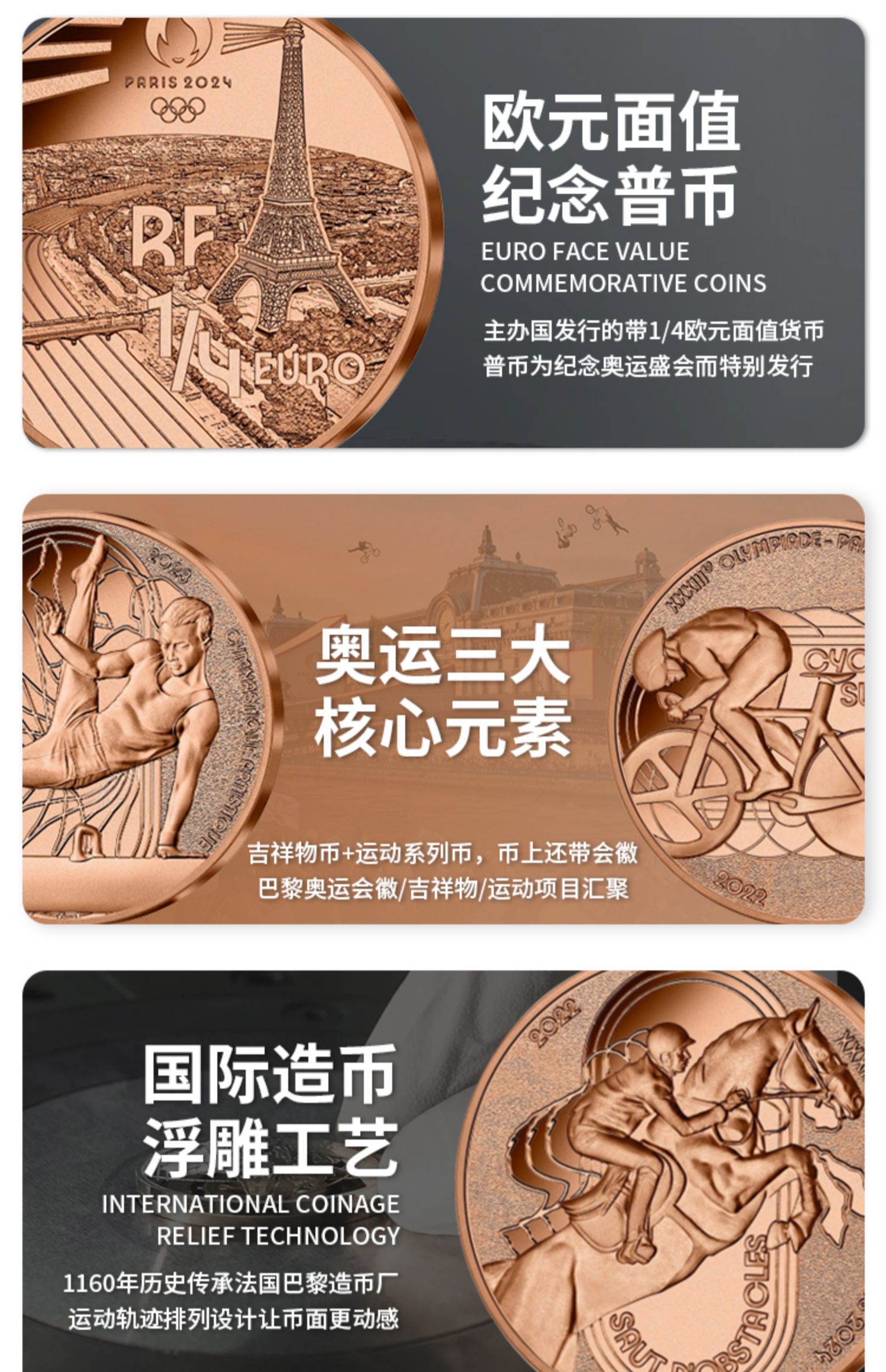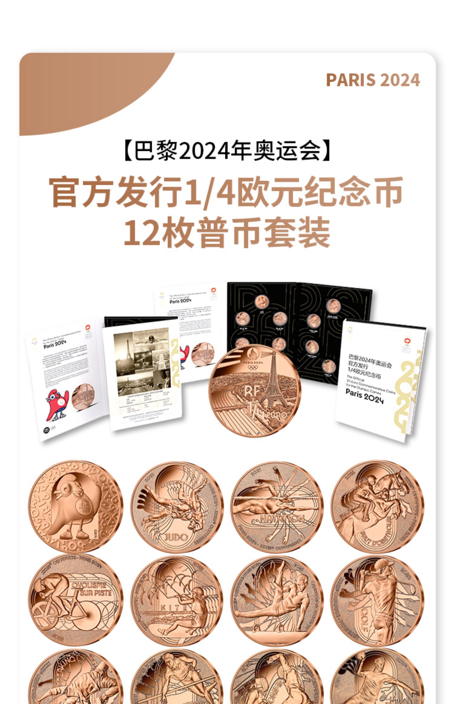 巴黎2024年奥运会纪念普币套装12枚 1/4欧元纪念币