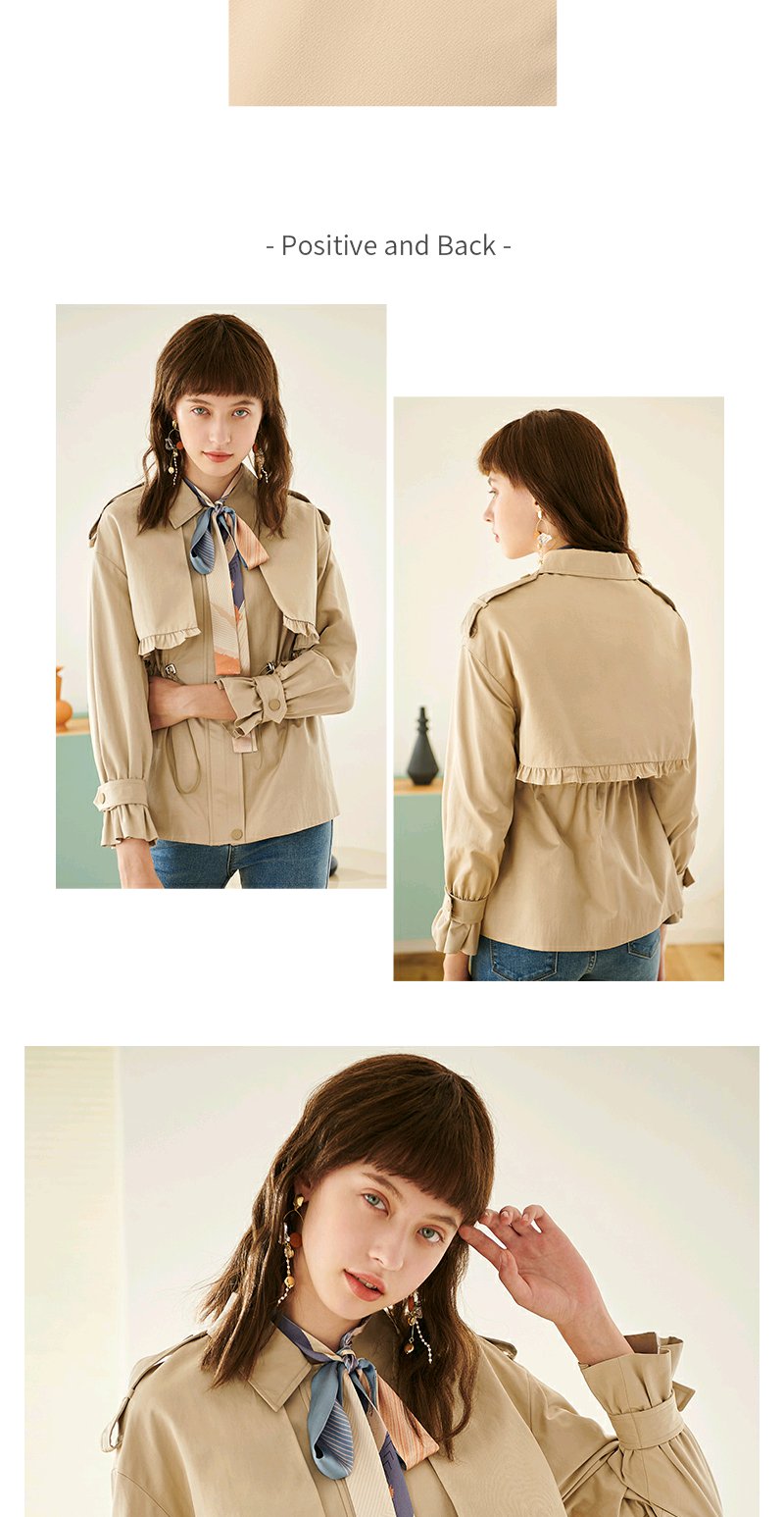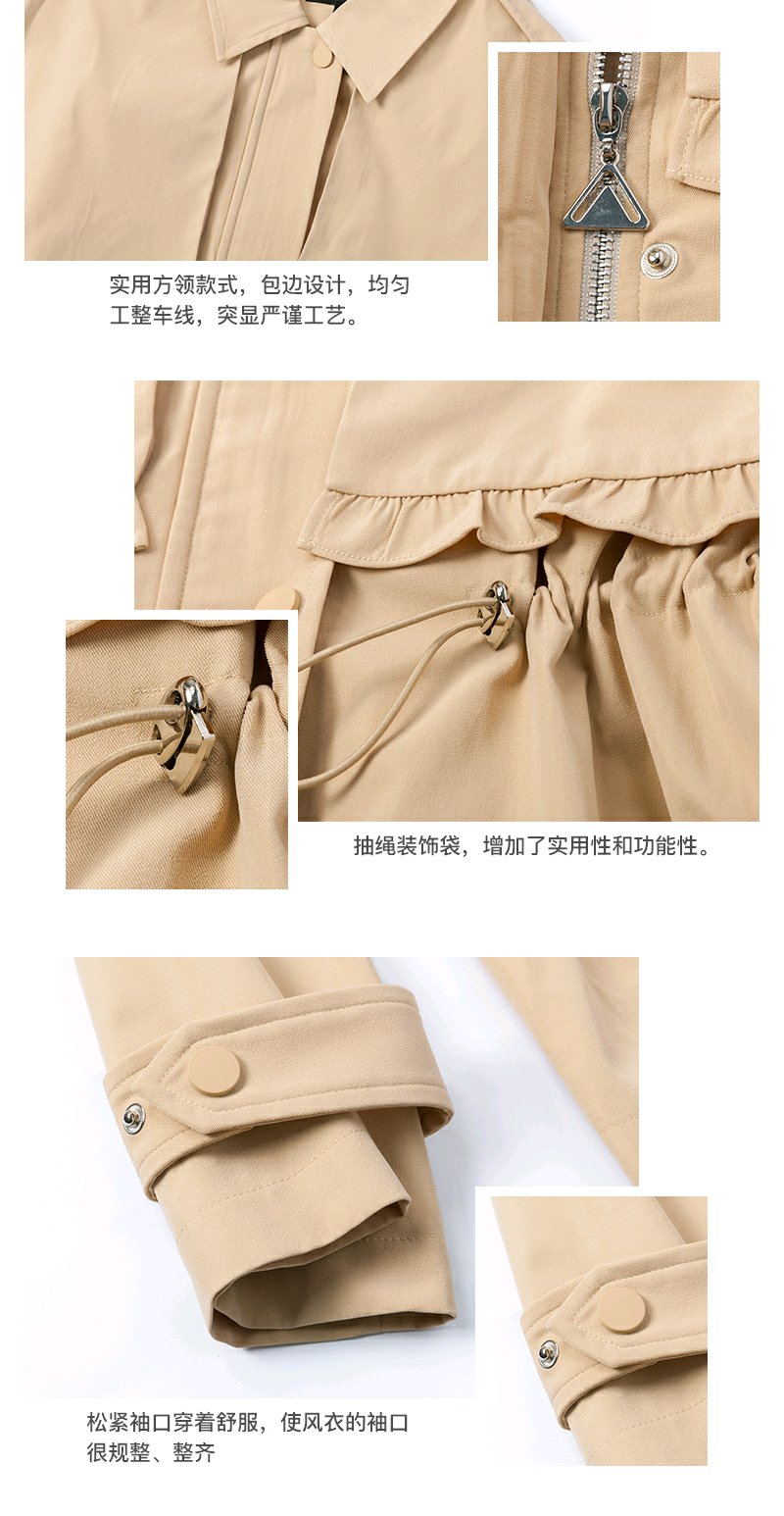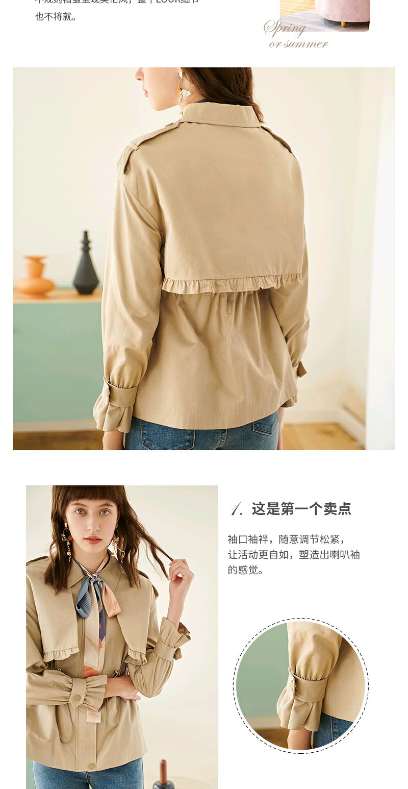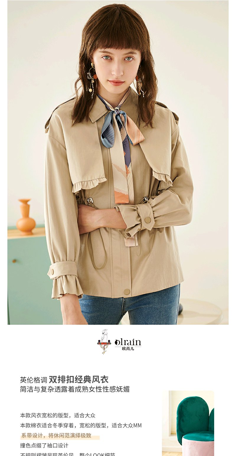 欧芮儿春新款卡其色风衣女复古时尚短款外套女修身显瘦