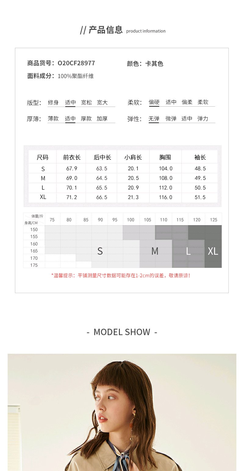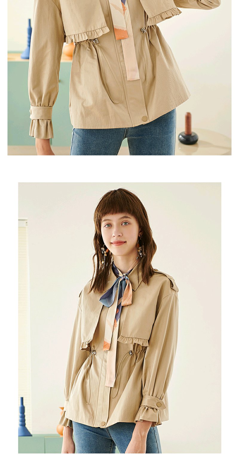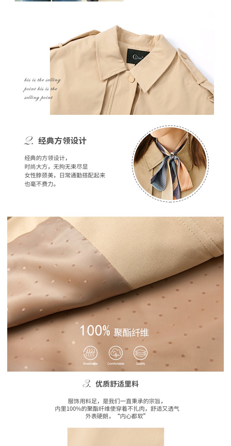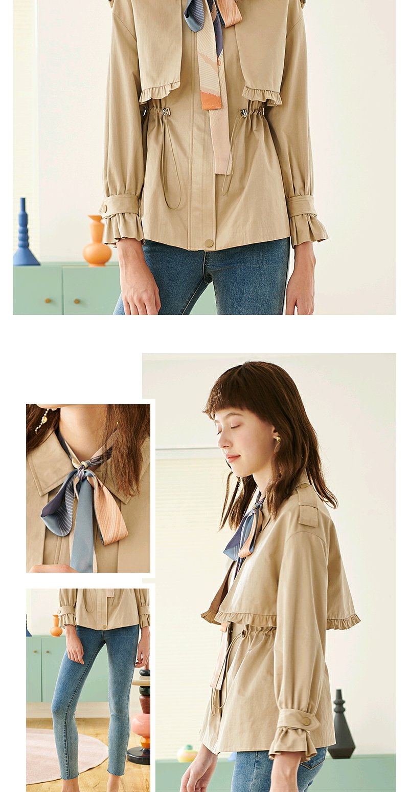 欧芮儿春新款卡其色风衣女复古时尚短款外套女修身显瘦