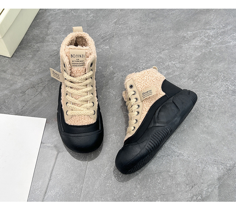 「加绒加厚款!三色可选」高帮鞋女2023冬季新款加绒学生棉鞋厚底面包雪地小白鞋