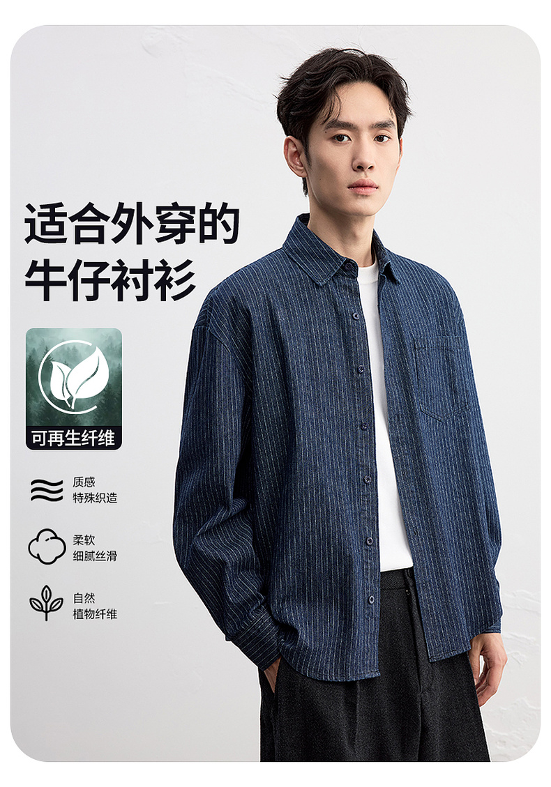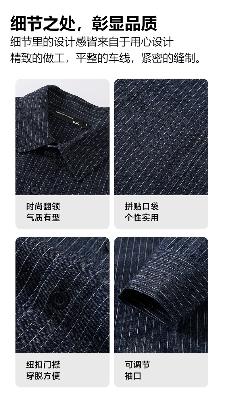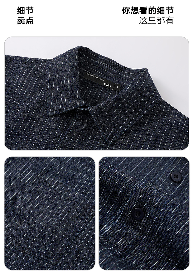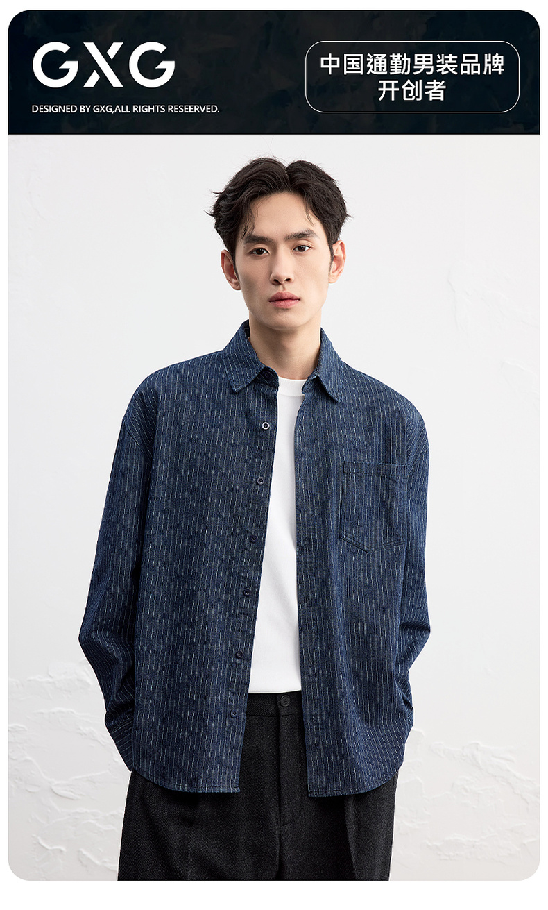 GXG男装25秋季经典条纹休闲日常通勤简约翻领外穿衬衫男式夹克衫K&C