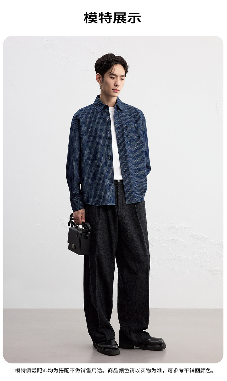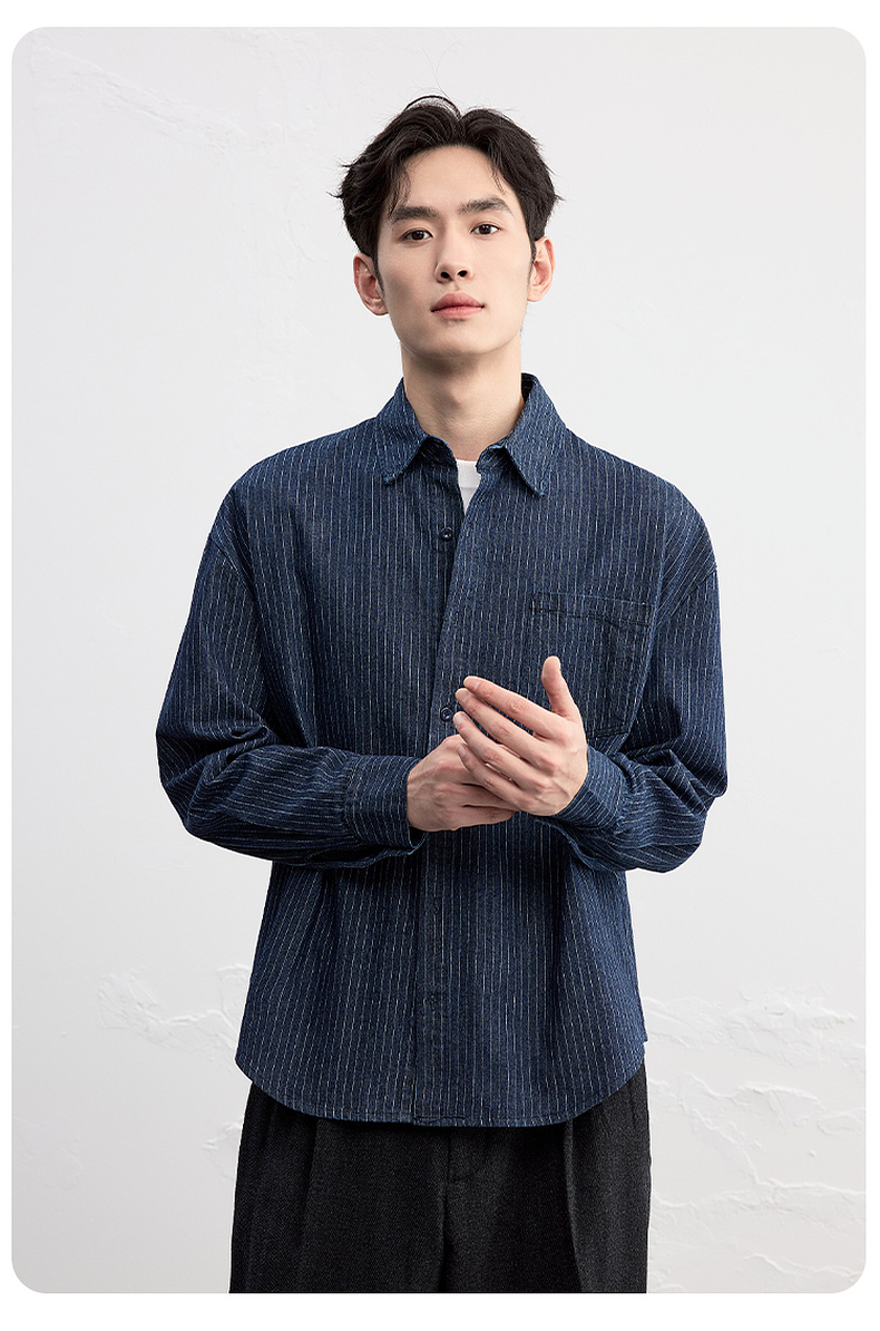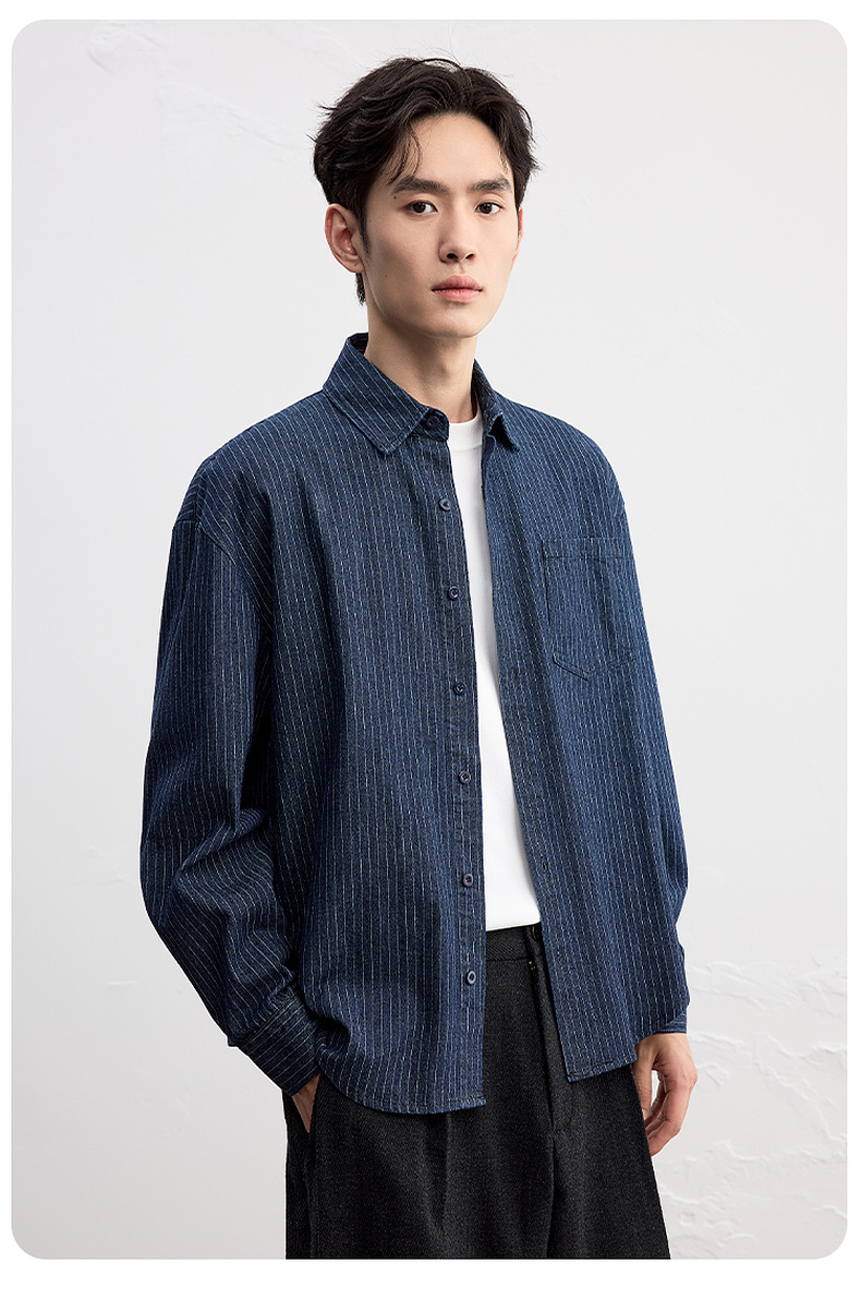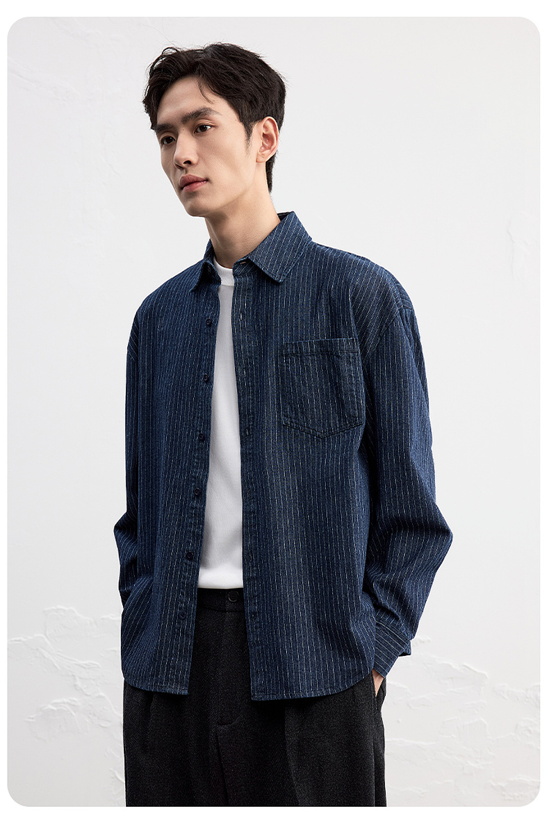 GXG男装25秋季经典条纹休闲日常通勤简约翻领外穿衬衫男式夹克衫K&C