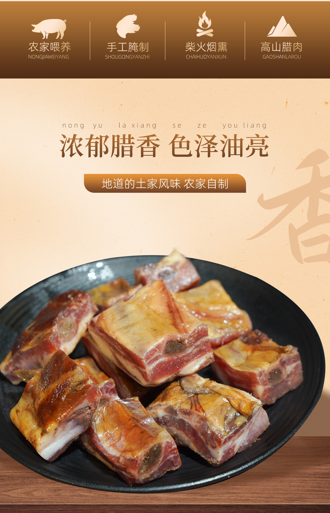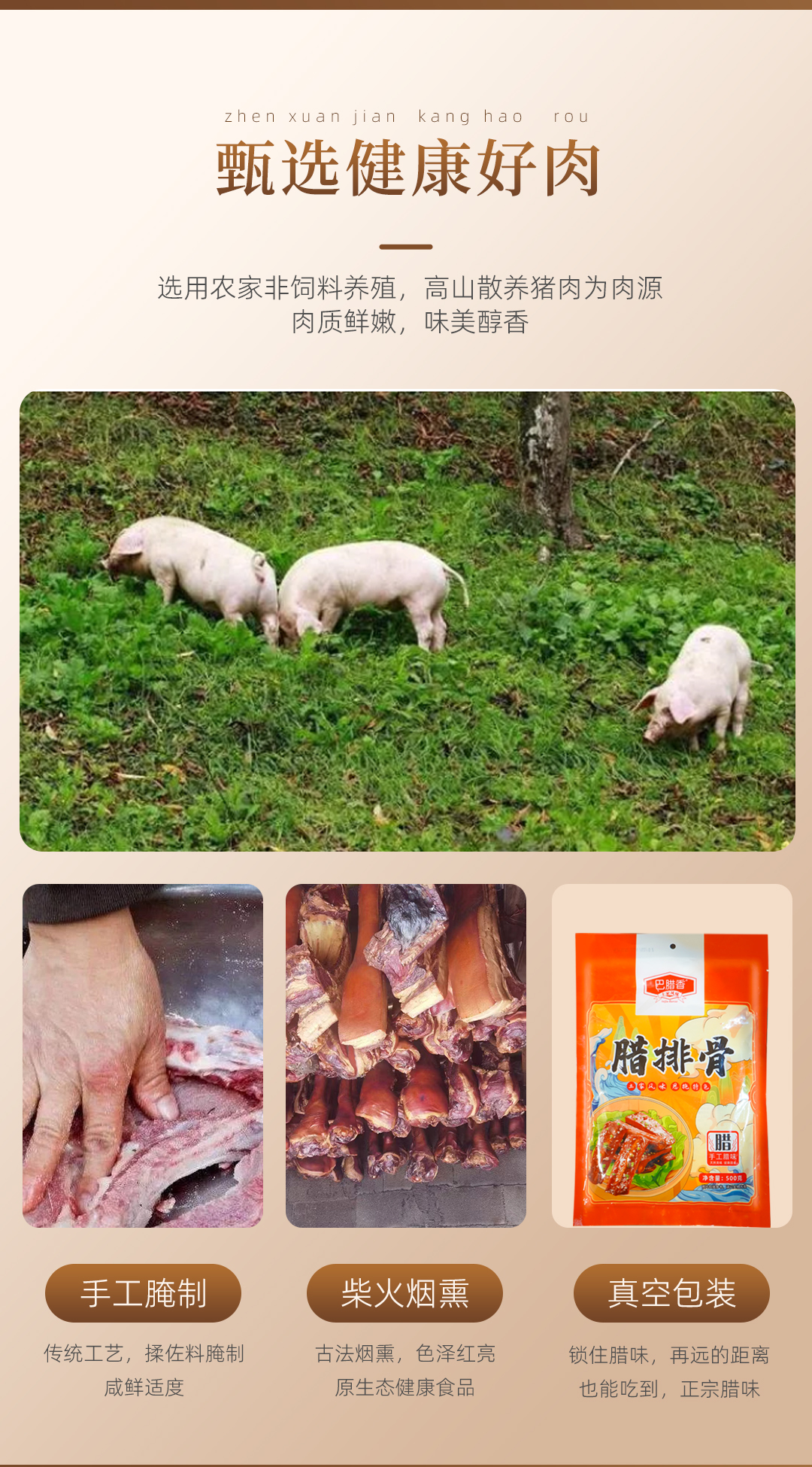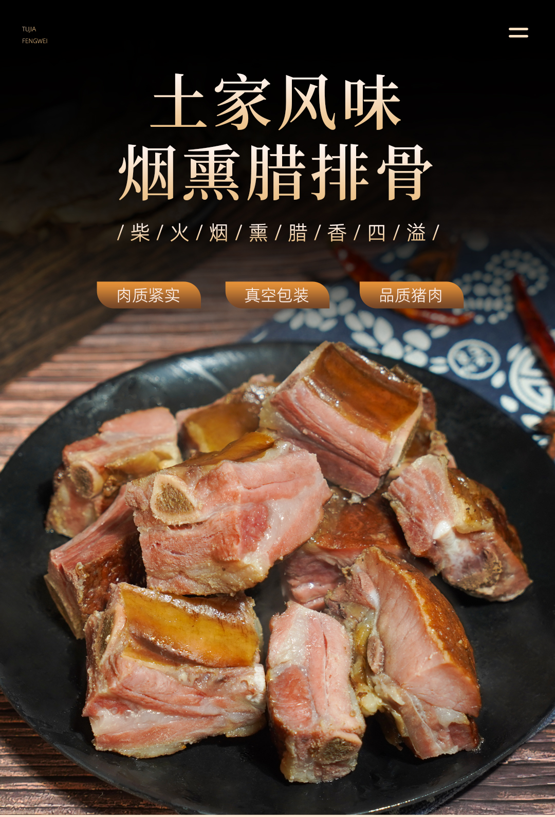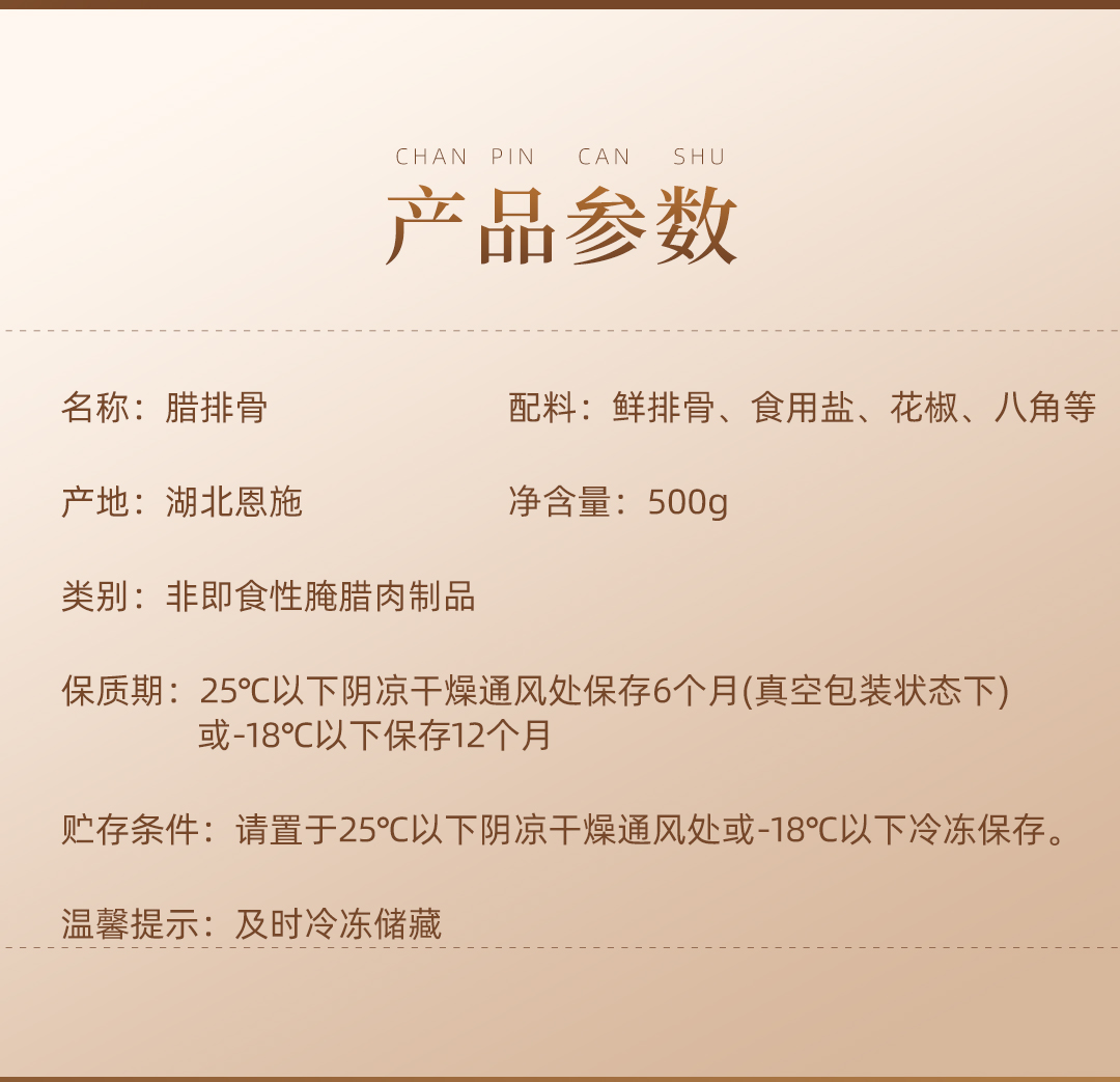 巴东县巴腊香烟熏风味土家腊直排骨500g/袋