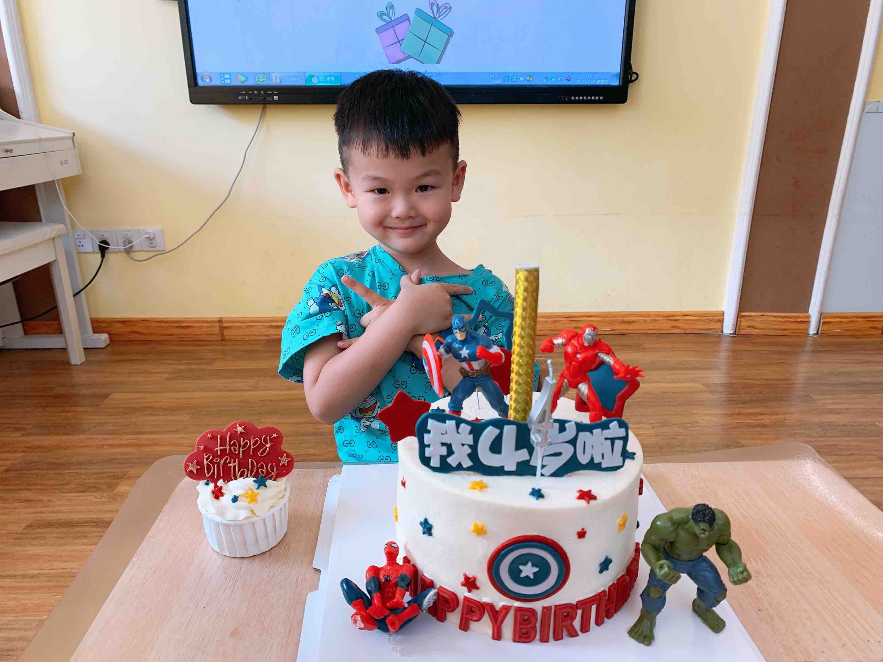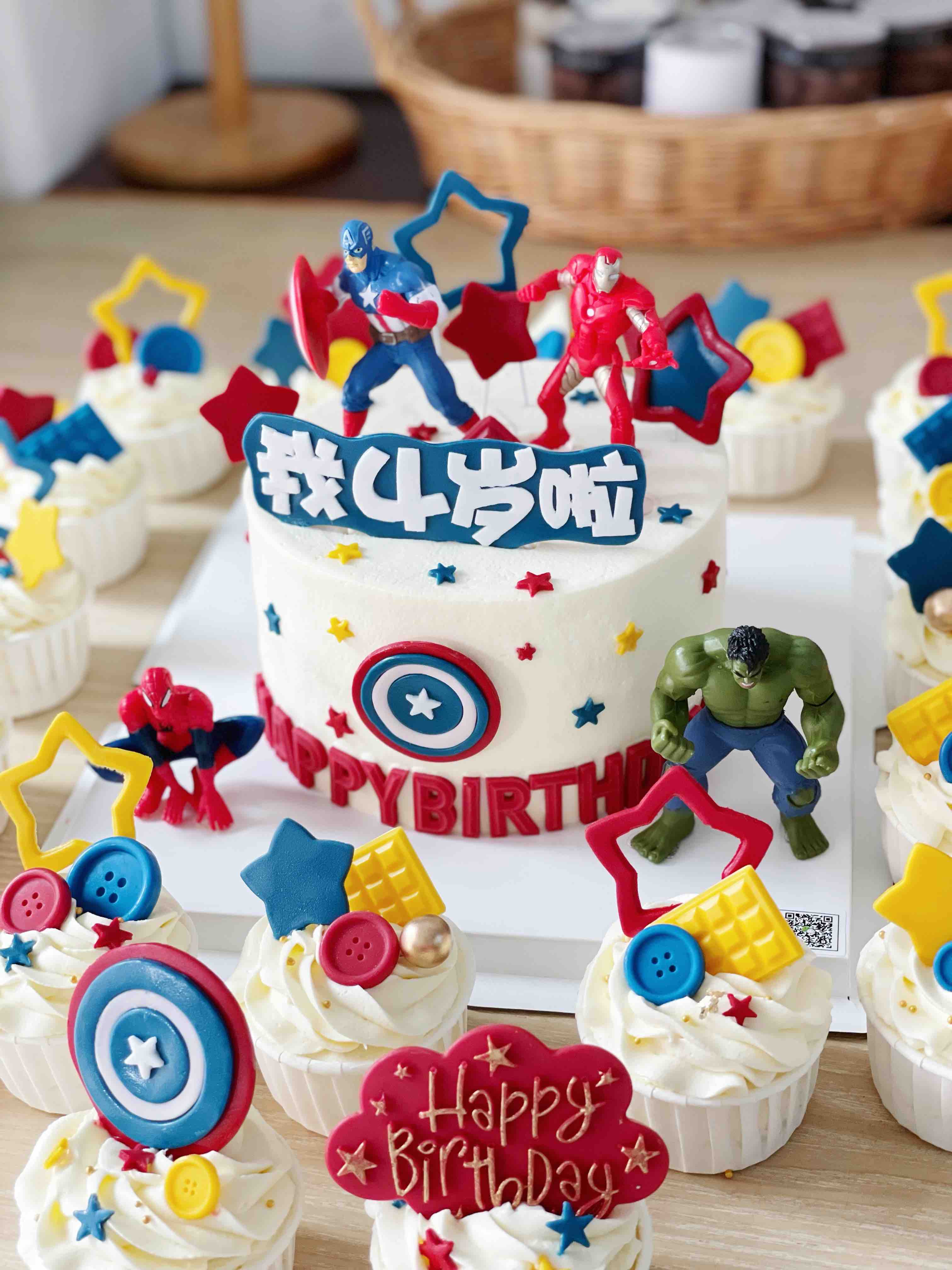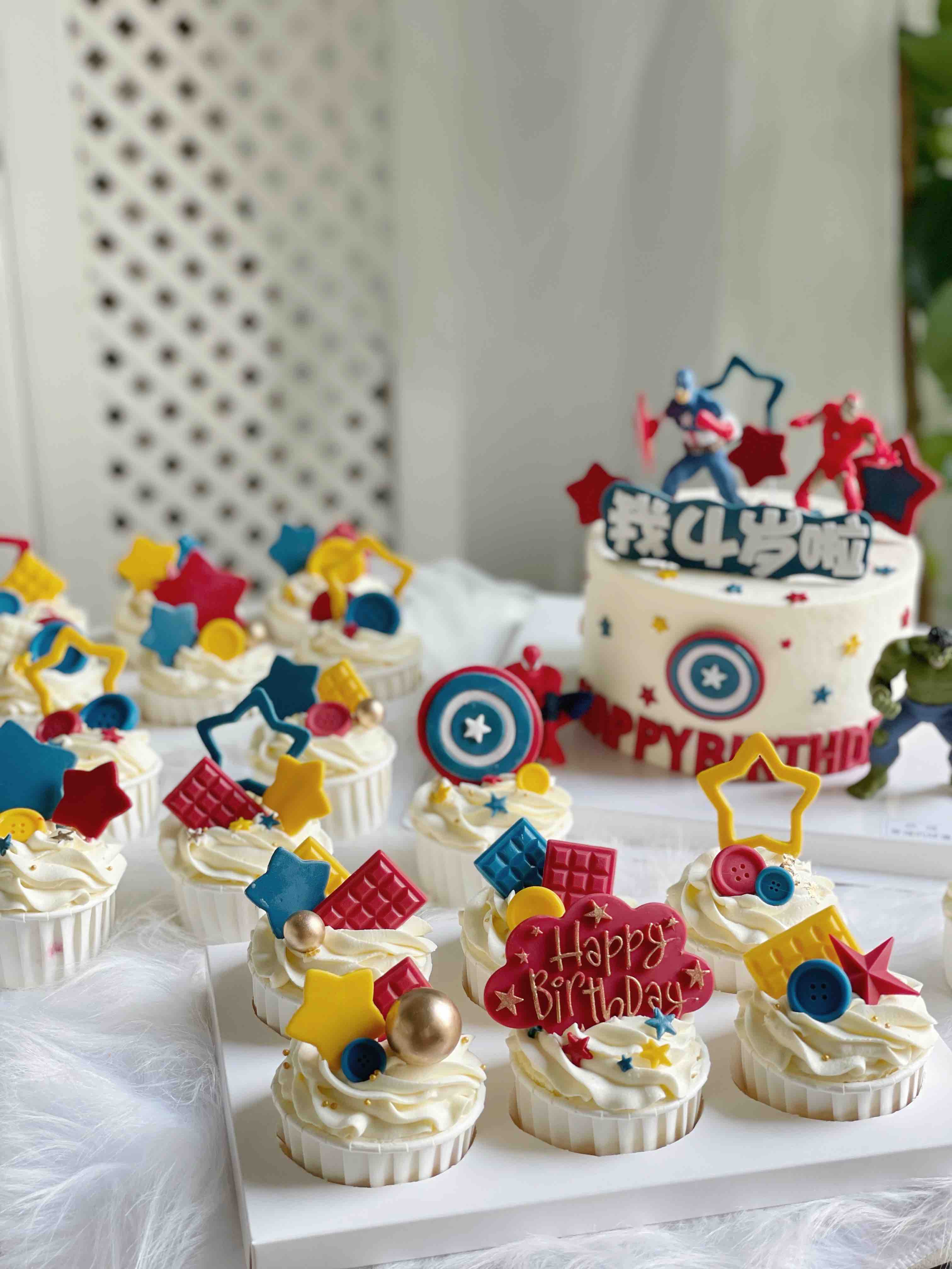 可以与杯子蛋糕一起派送,图片为6寸加高主蛋糕,搭配18个杯子蛋糕,可供20个小朋友+3个老师