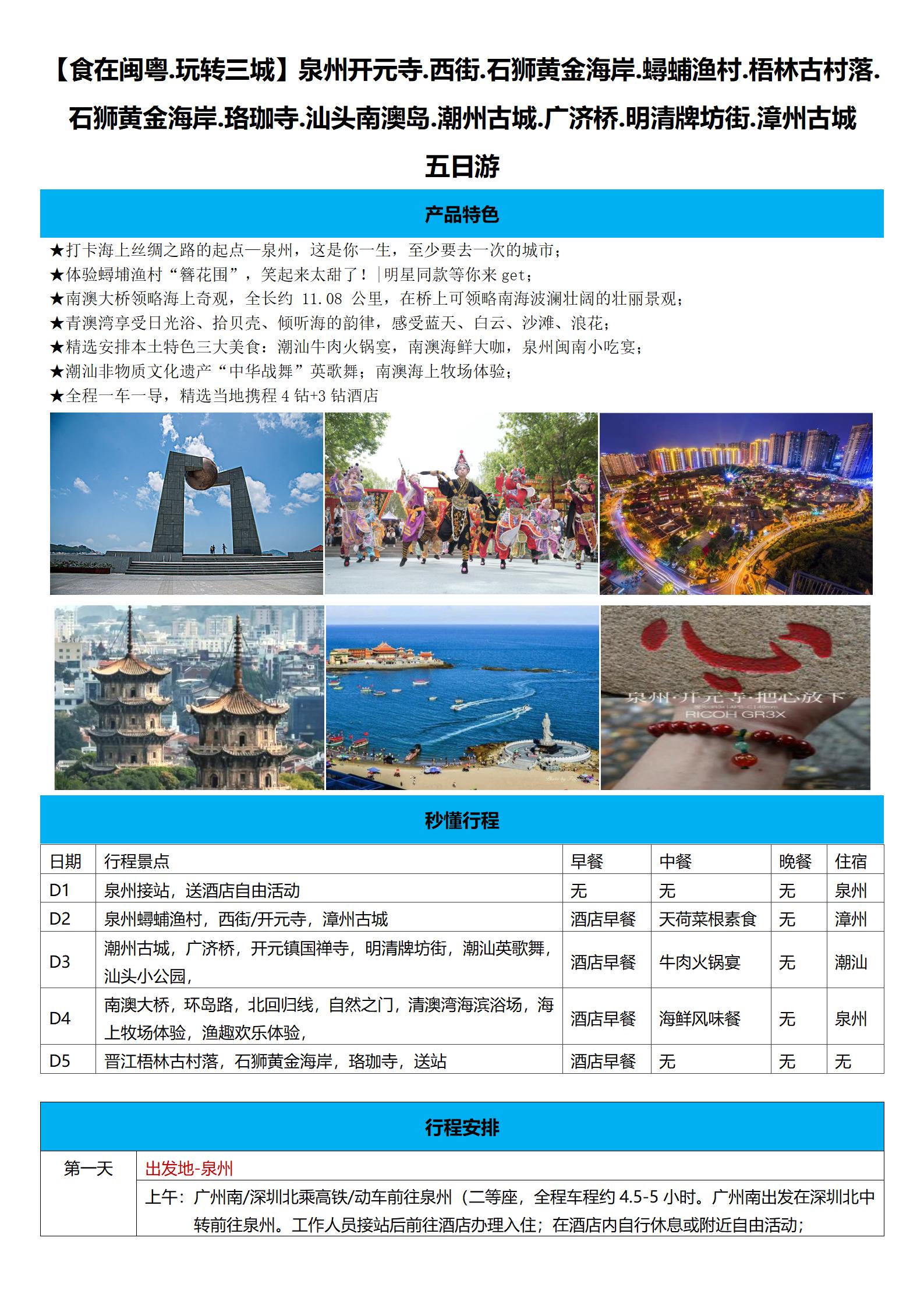 【五一】<福建泉州+漳州+潮汕5天动车团>泉州开元寺.西街.石狮黄金海岸.蟳蜅渔村.梧林古村落.石狮黄金海岸.珞珈寺.汕头南澳岛.潮州古城.广济桥.明清牌坊街.漳州古城