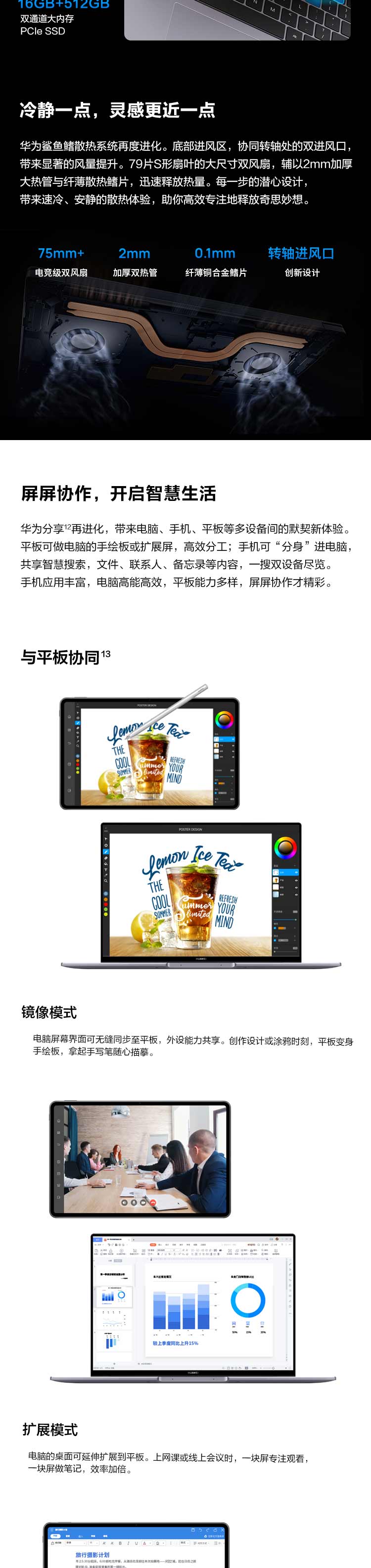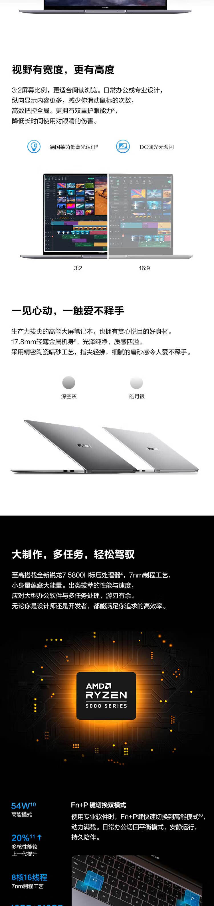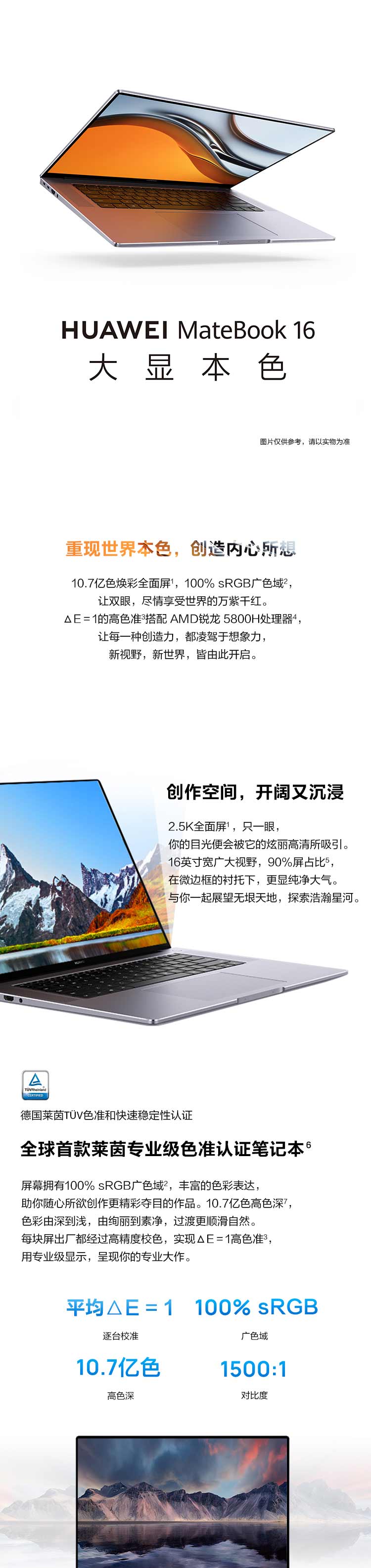 华为MateBook 16 轻薄高性能办公笔记本 16英寸2.5K全面屏( 16G 512G 高色准多屏协同) 灰