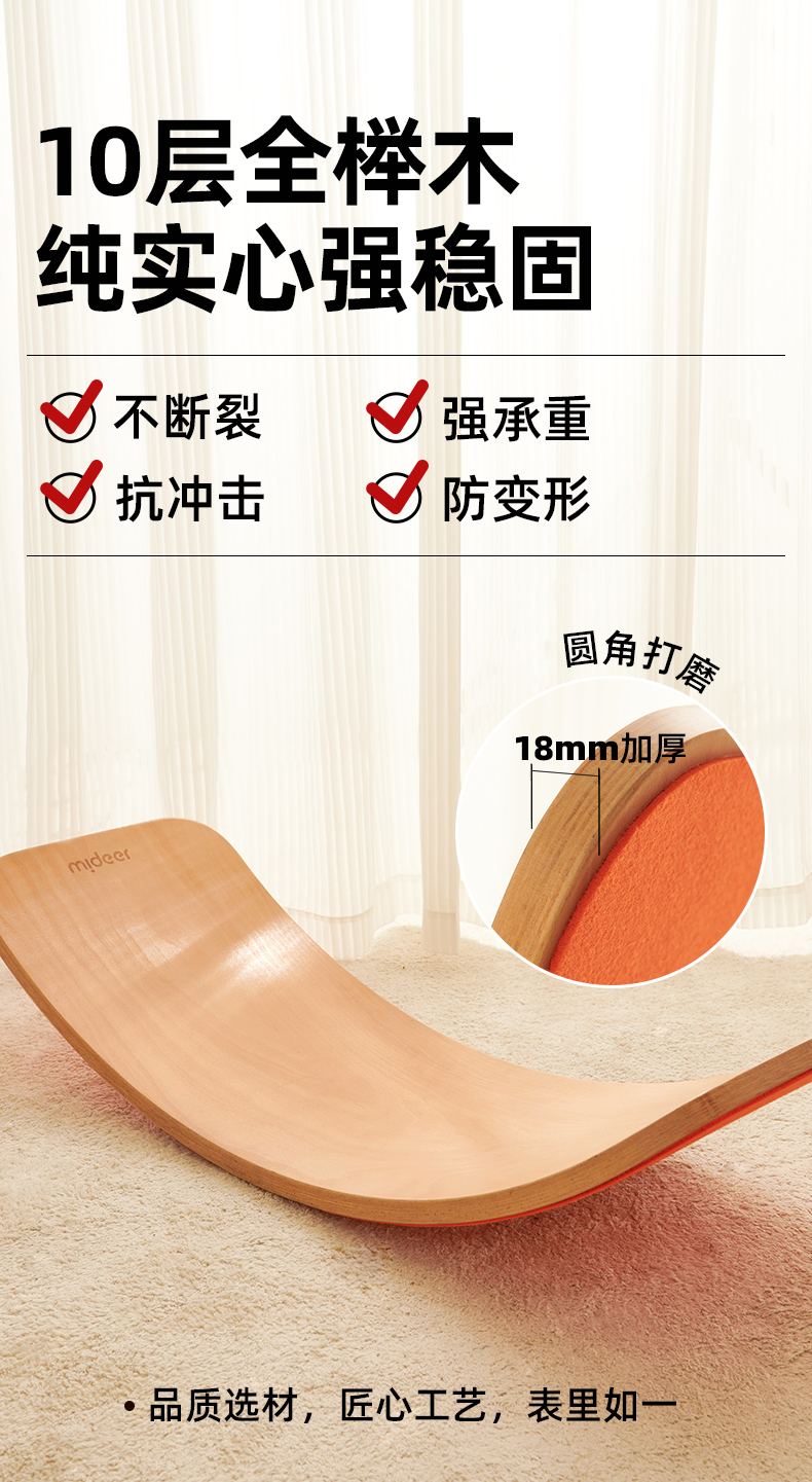mideer弥鹿儿童聪明平衡板跷跷板室内专注力训练器材平衡木玩具