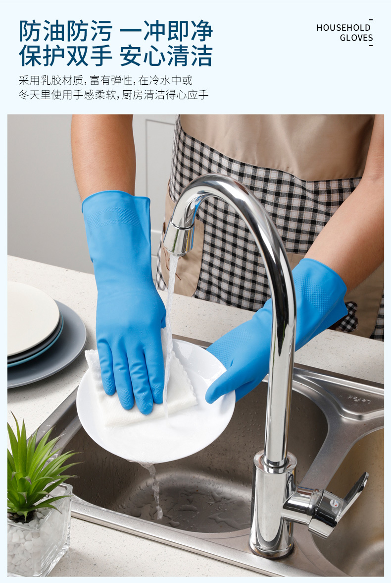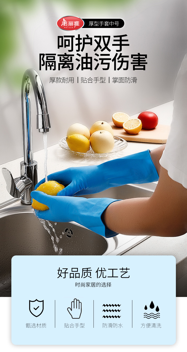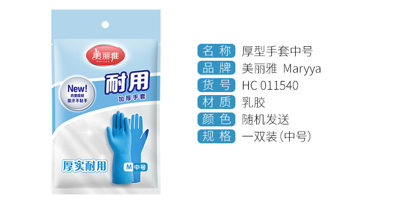 美丽雅加厚乳胶家务手套掌宽8X长30cm 1双/包