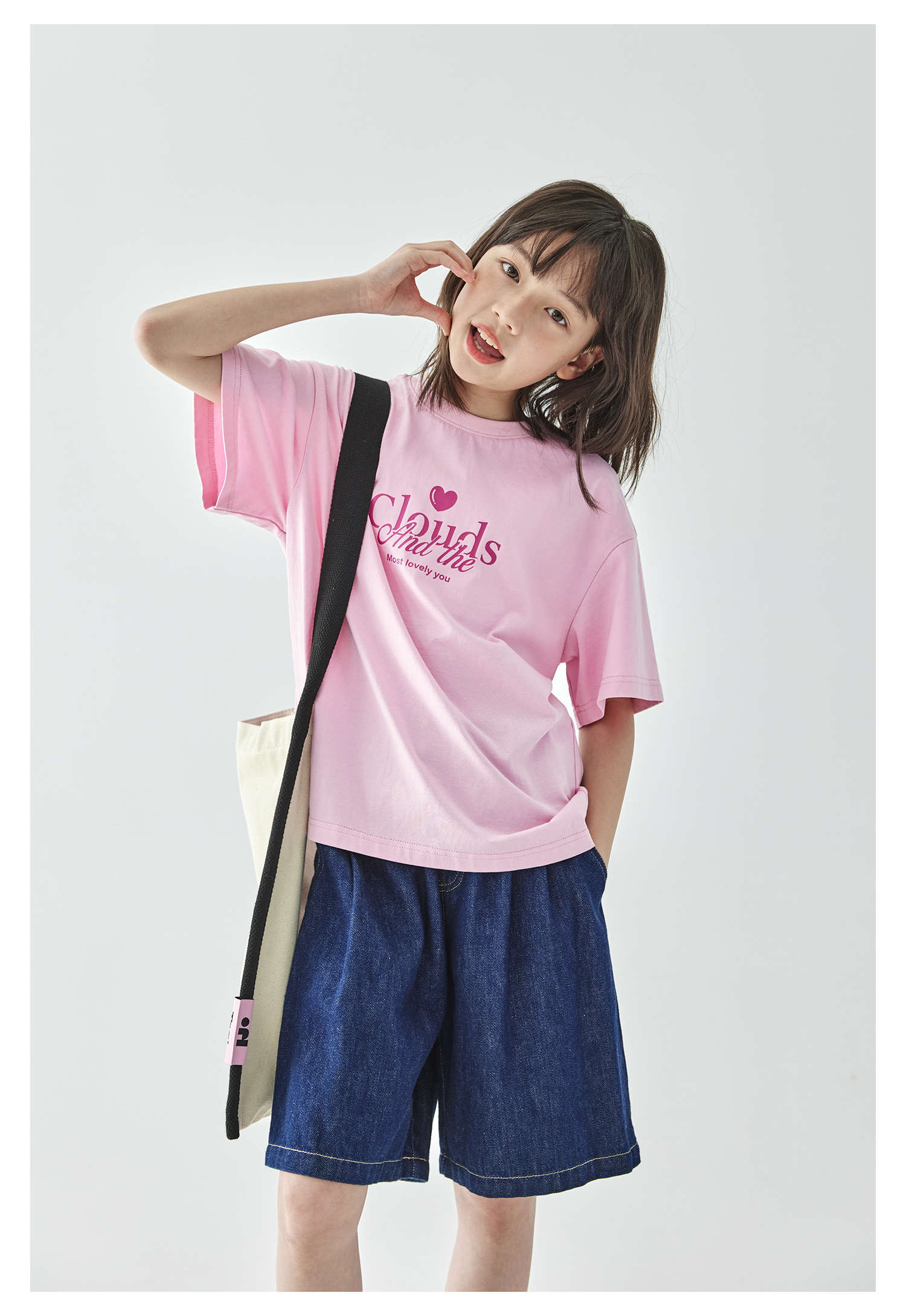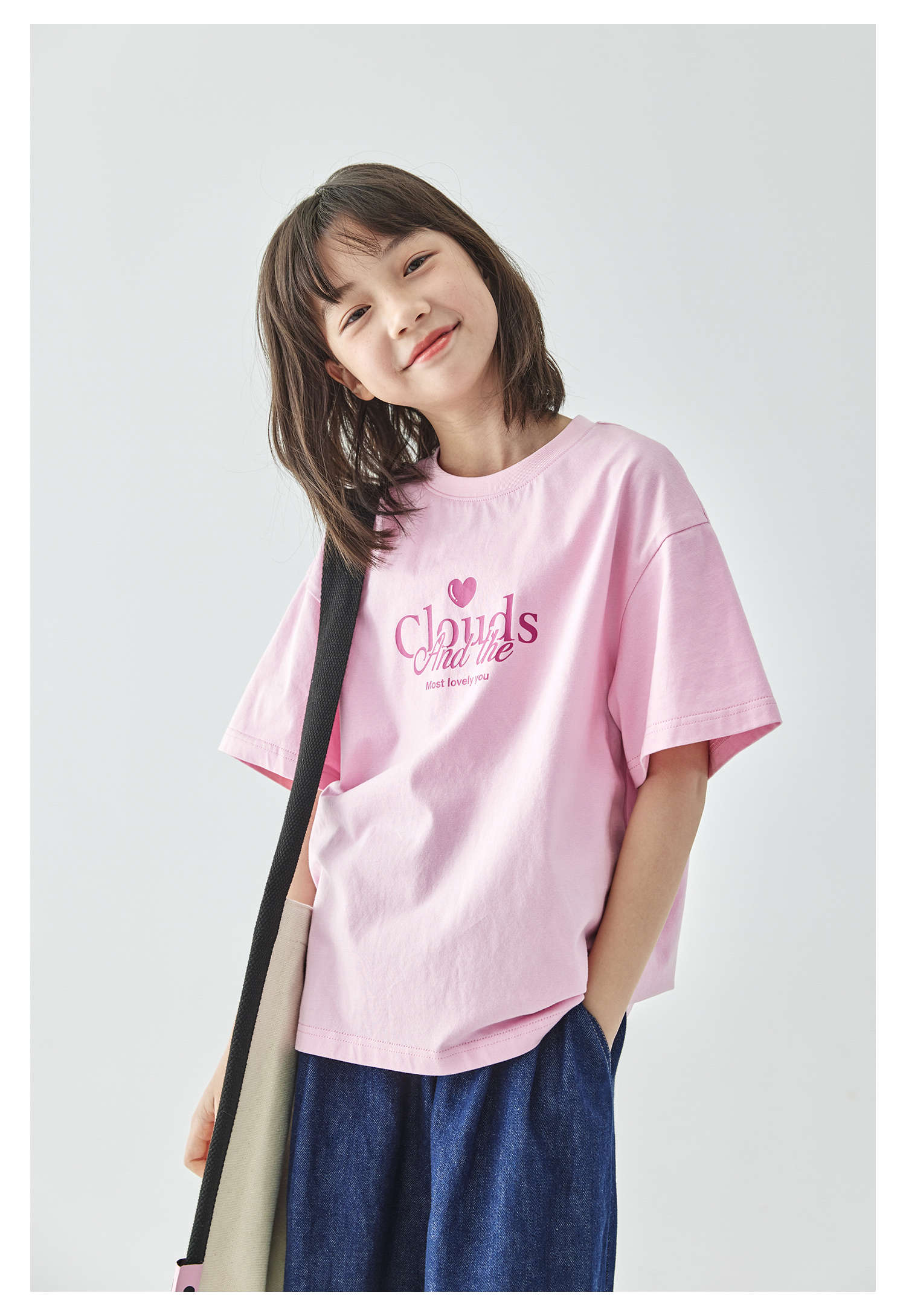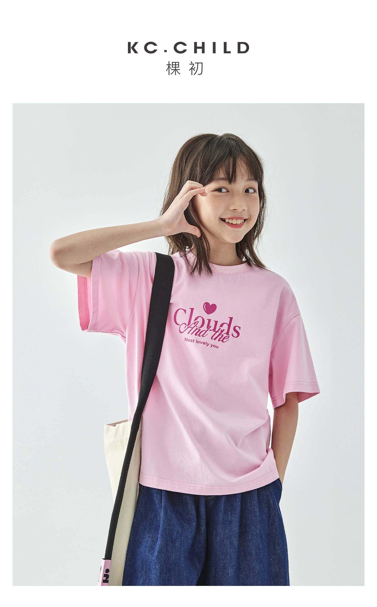 棵初26年春夏新款童装浪漫字母印花短袖T恤女童基础百搭全棉上衣