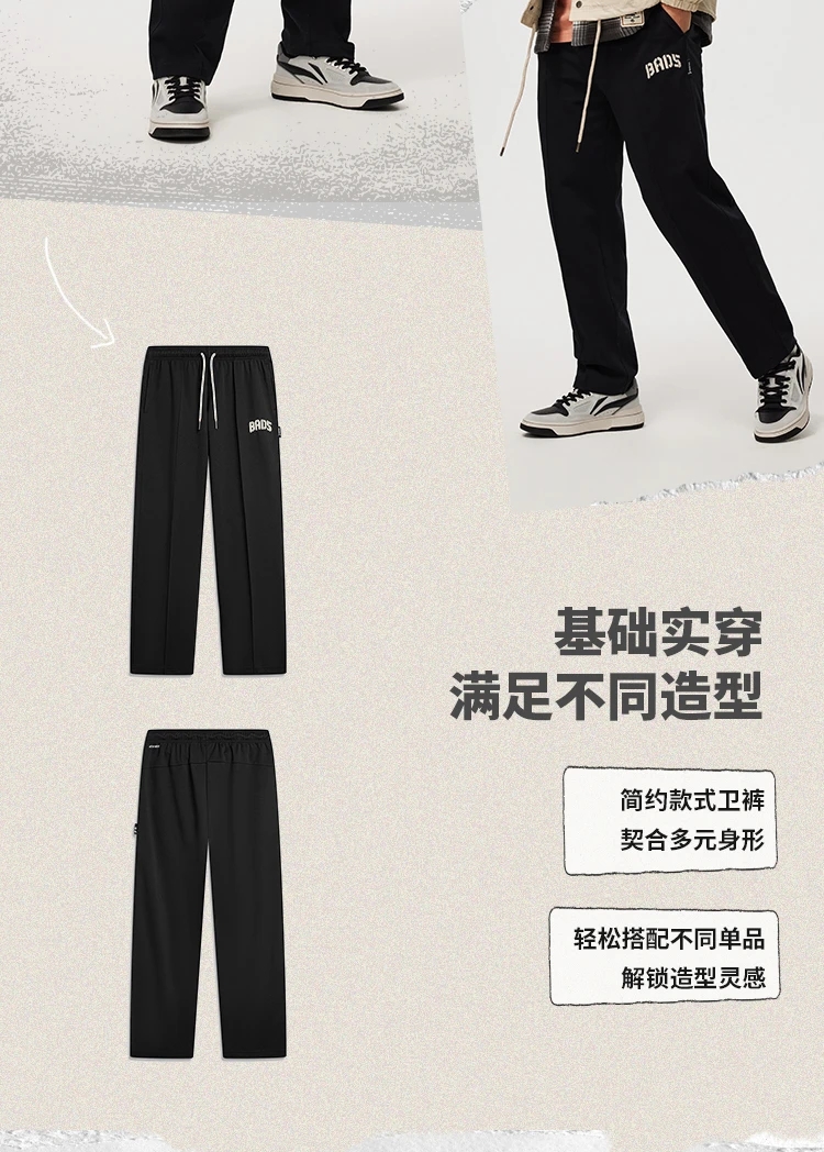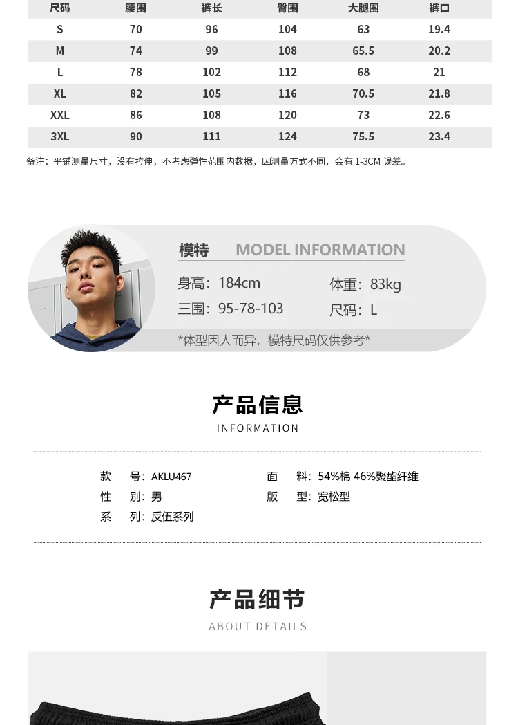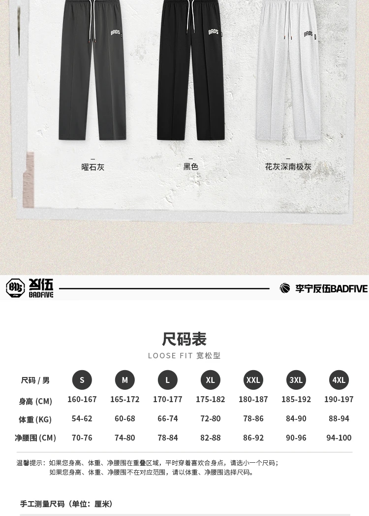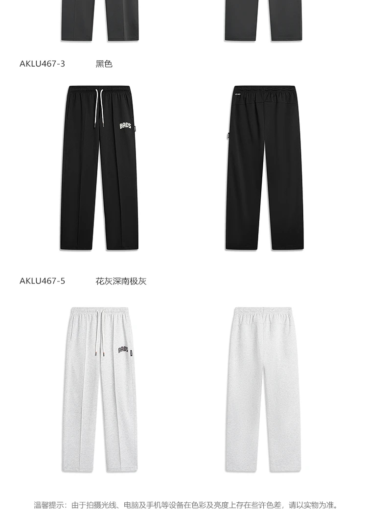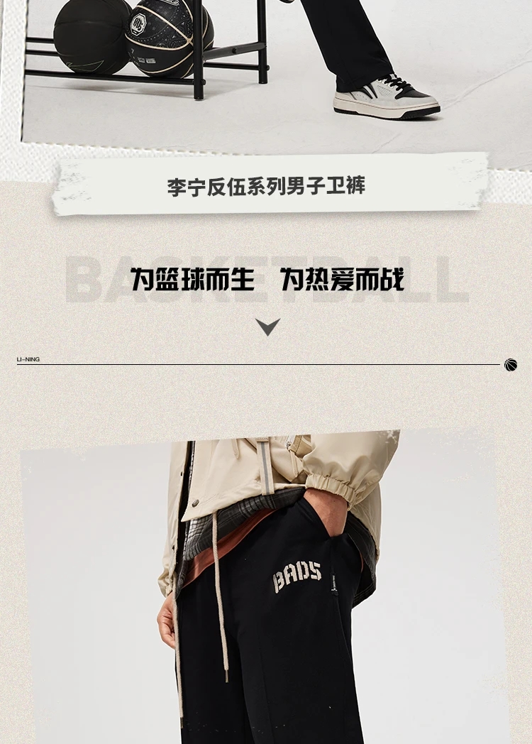 李宁反伍BADFIVE男子直筒冰感舒适宽松卫裤AKLU467