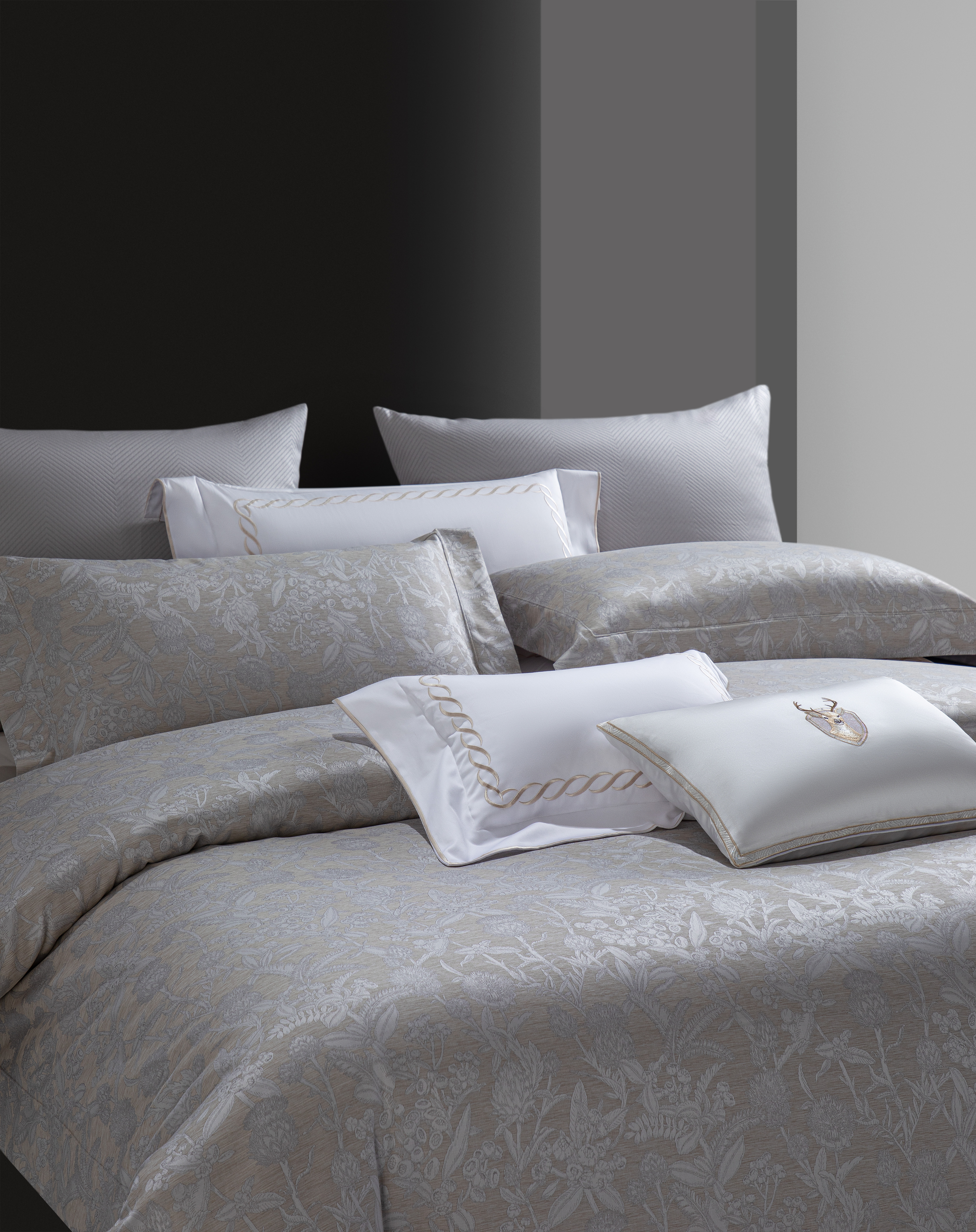 利路米家纺24年春季新款百支匹马棉色织提花四件套 卢浮花园--浅茶