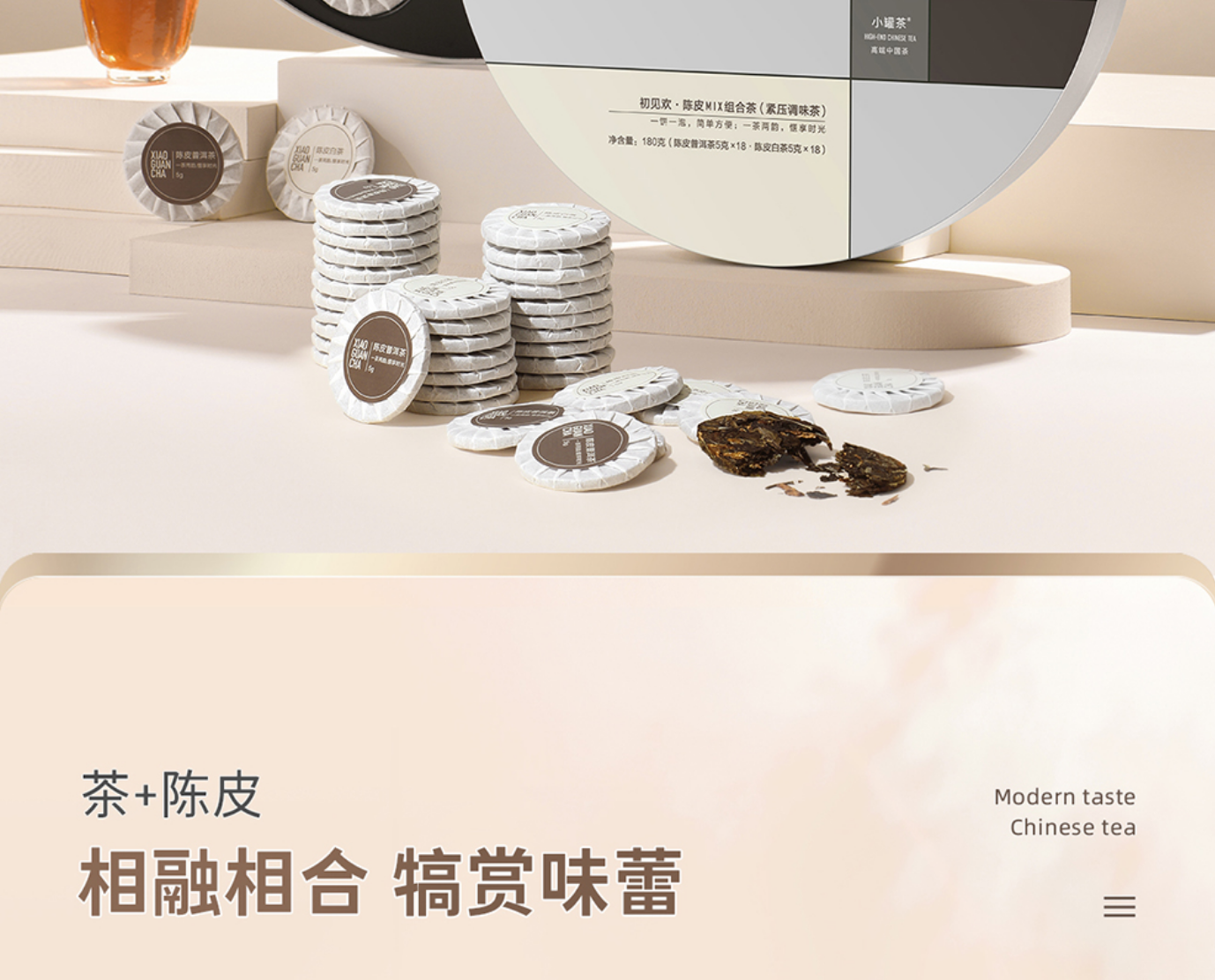 小罐茶陈皮组合茶普洱茶寿眉白茶紧压36饼茶茶叶礼盒装180g