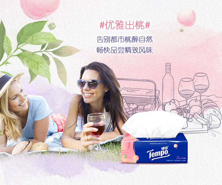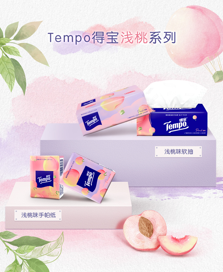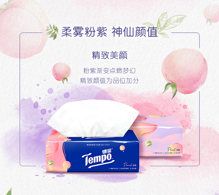 得宝Tempo 软抽纸巾4层加厚90抽16包箱装 甜心桃味 48小时发货(新旧款随机发)