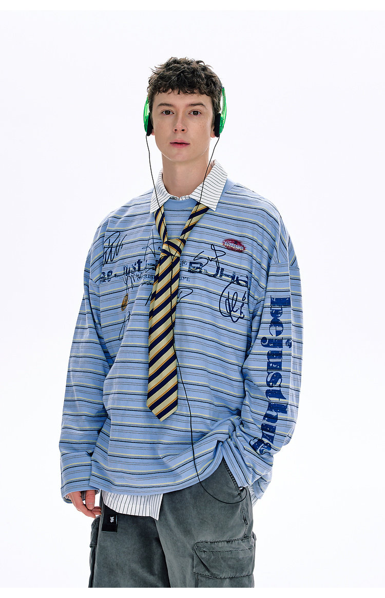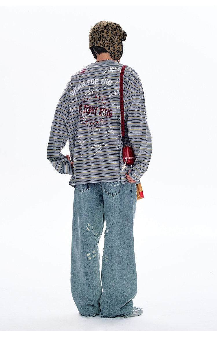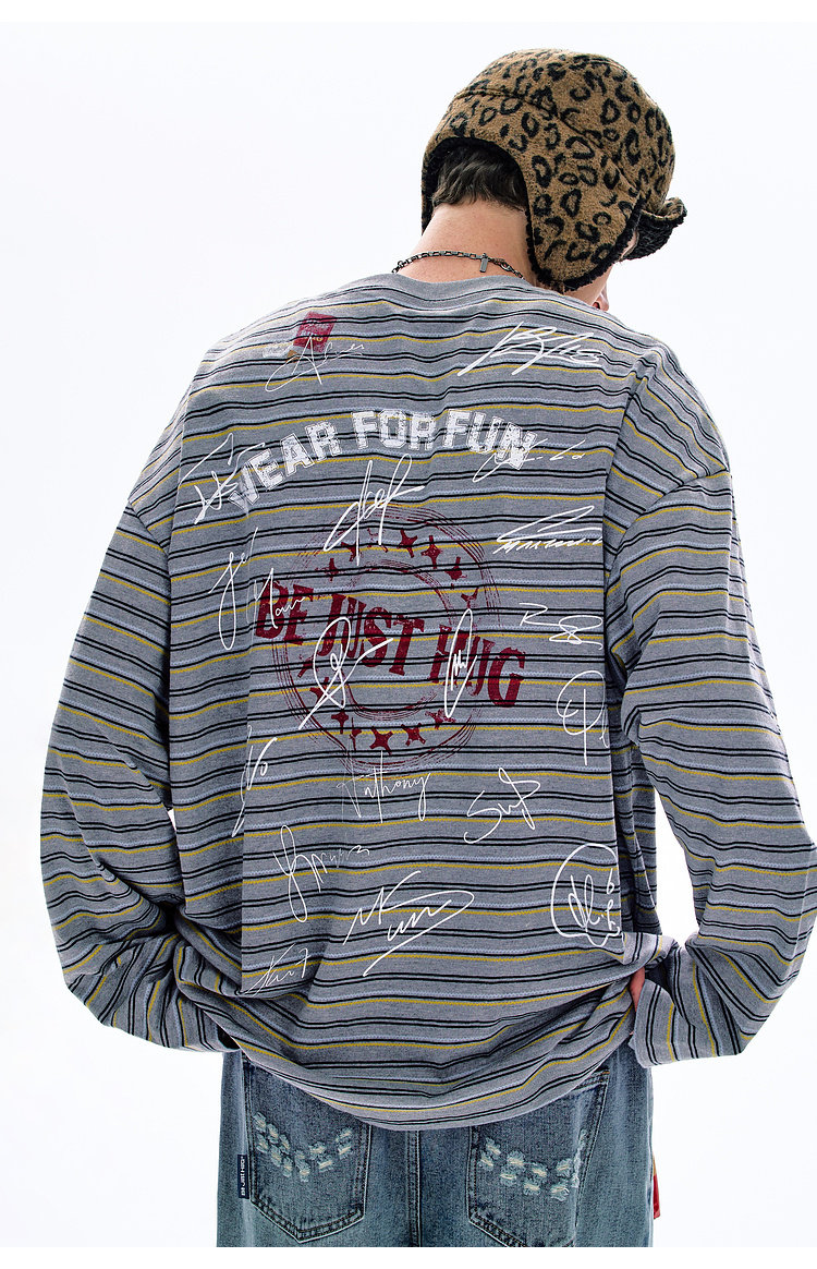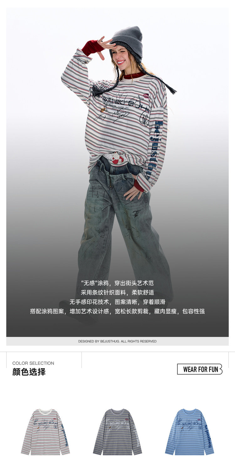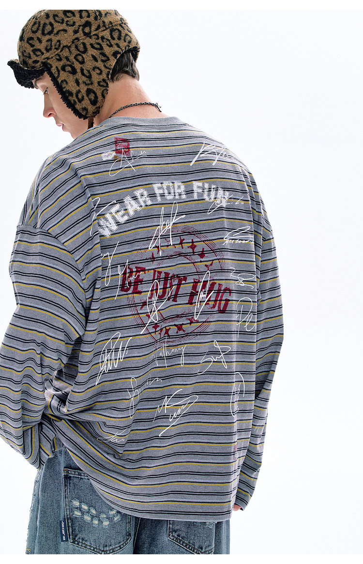 BJHG不计后果 条纹长袖T恤男款春季潮牌美式复古休闲纯棉卫衣薄女