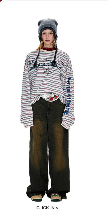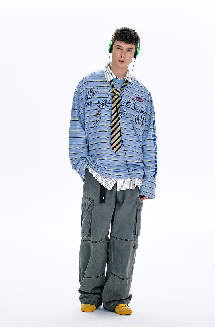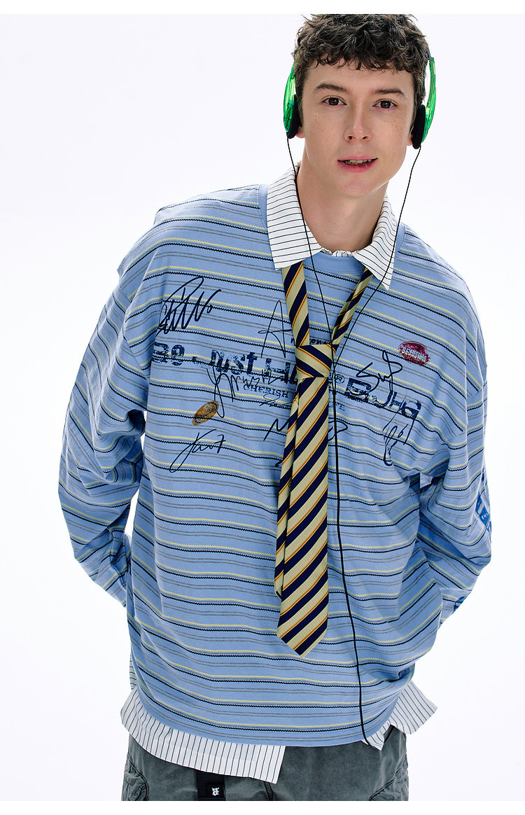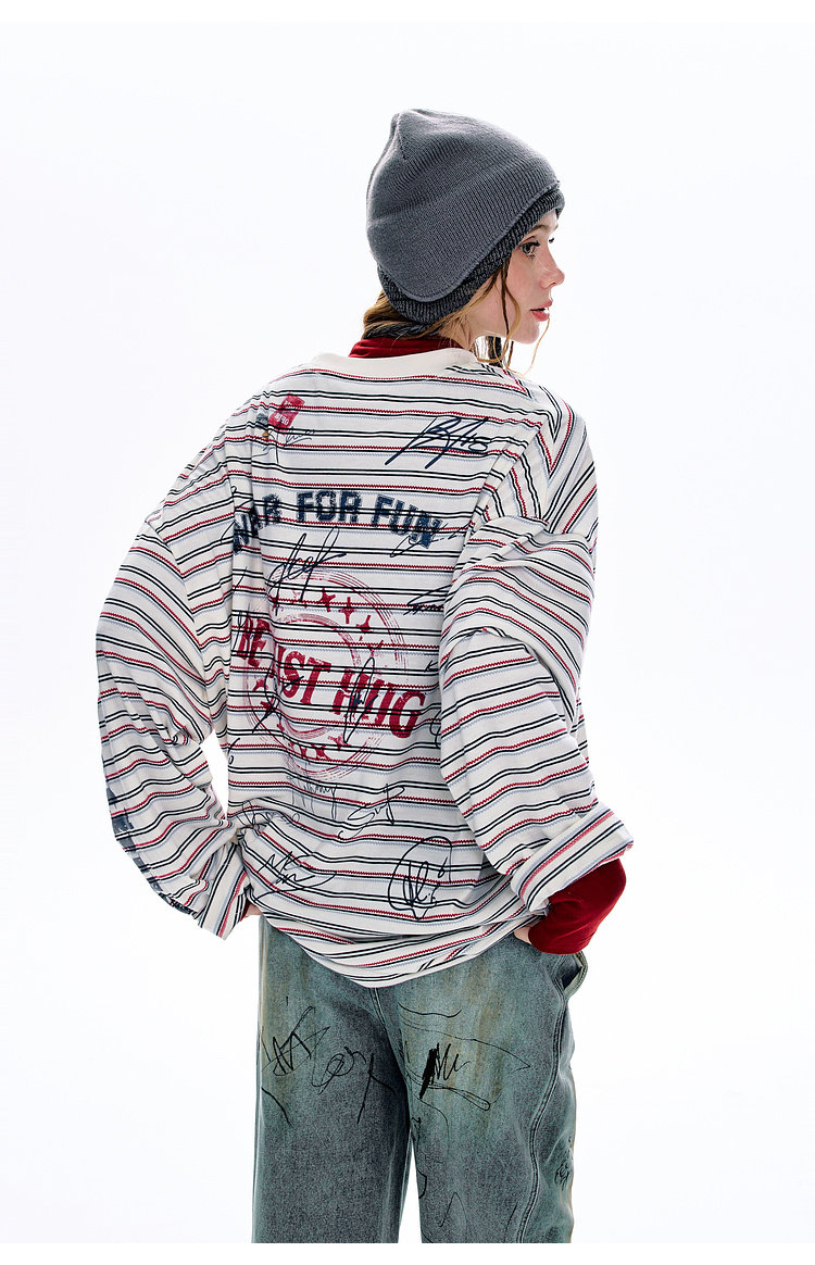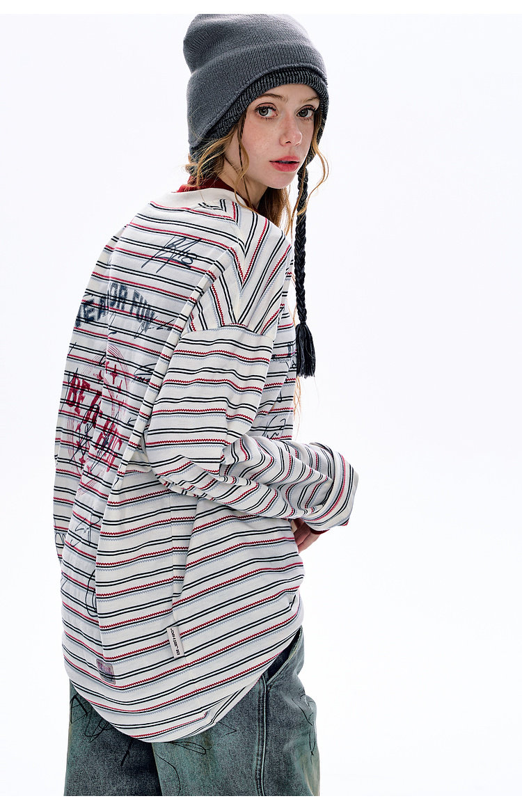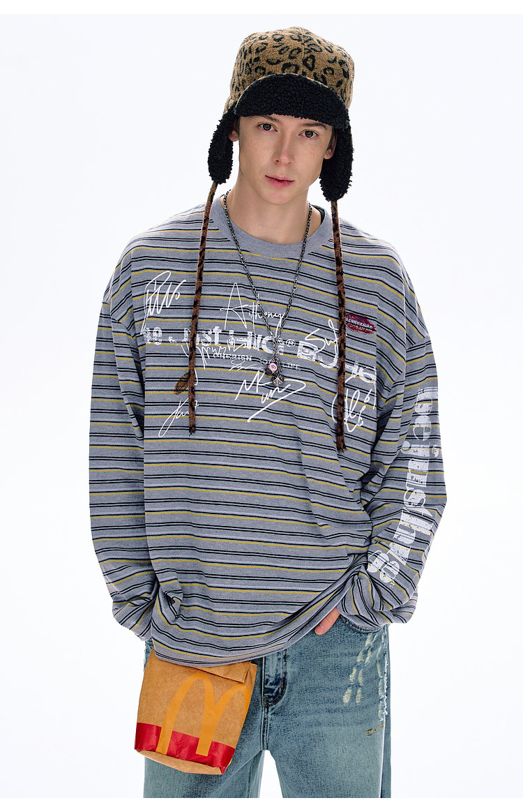 BJHG不计后果 条纹长袖T恤男款春季潮牌美式复古休闲纯棉卫衣薄女