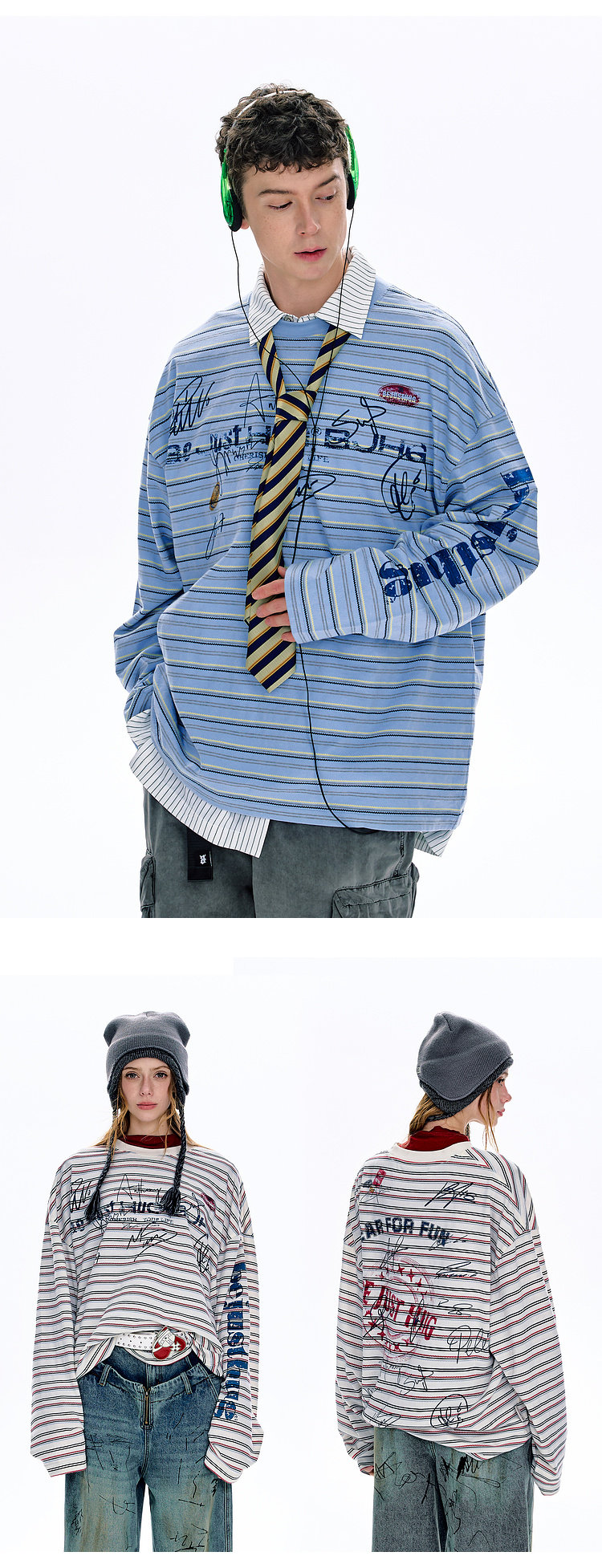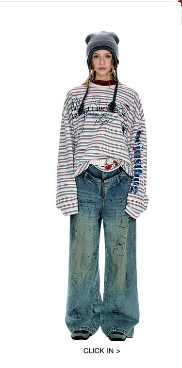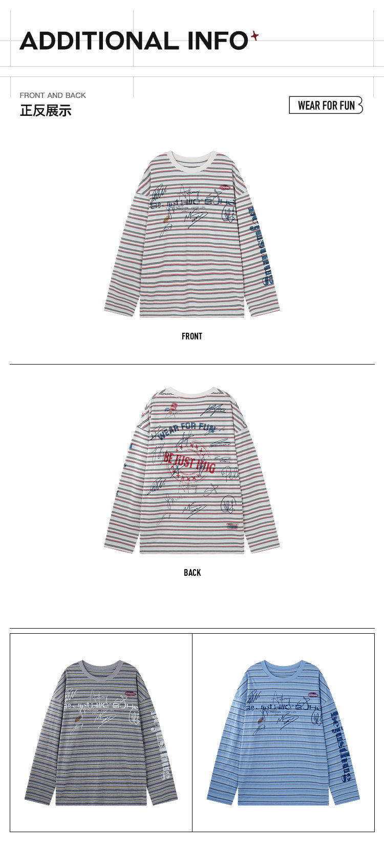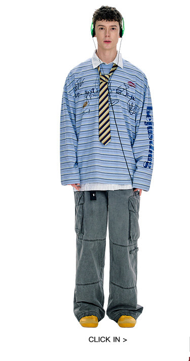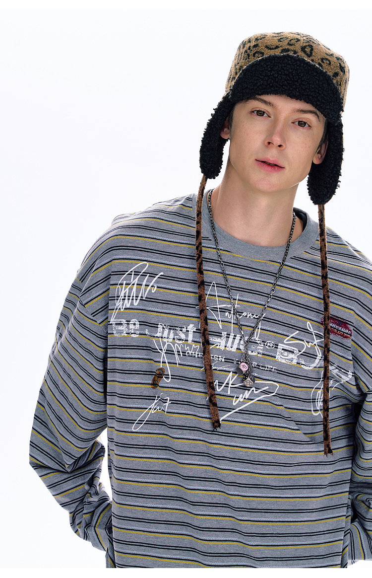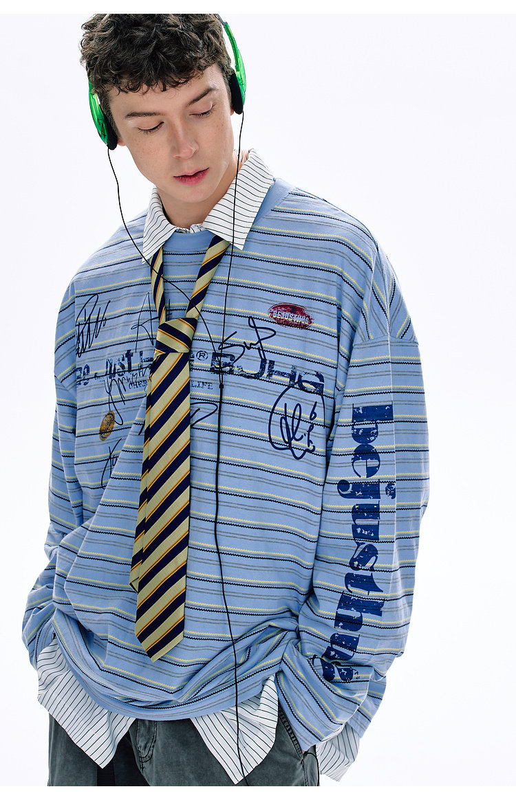 BJHG不计后果 条纹长袖T恤男款春季潮牌美式复古休闲纯棉卫衣薄女