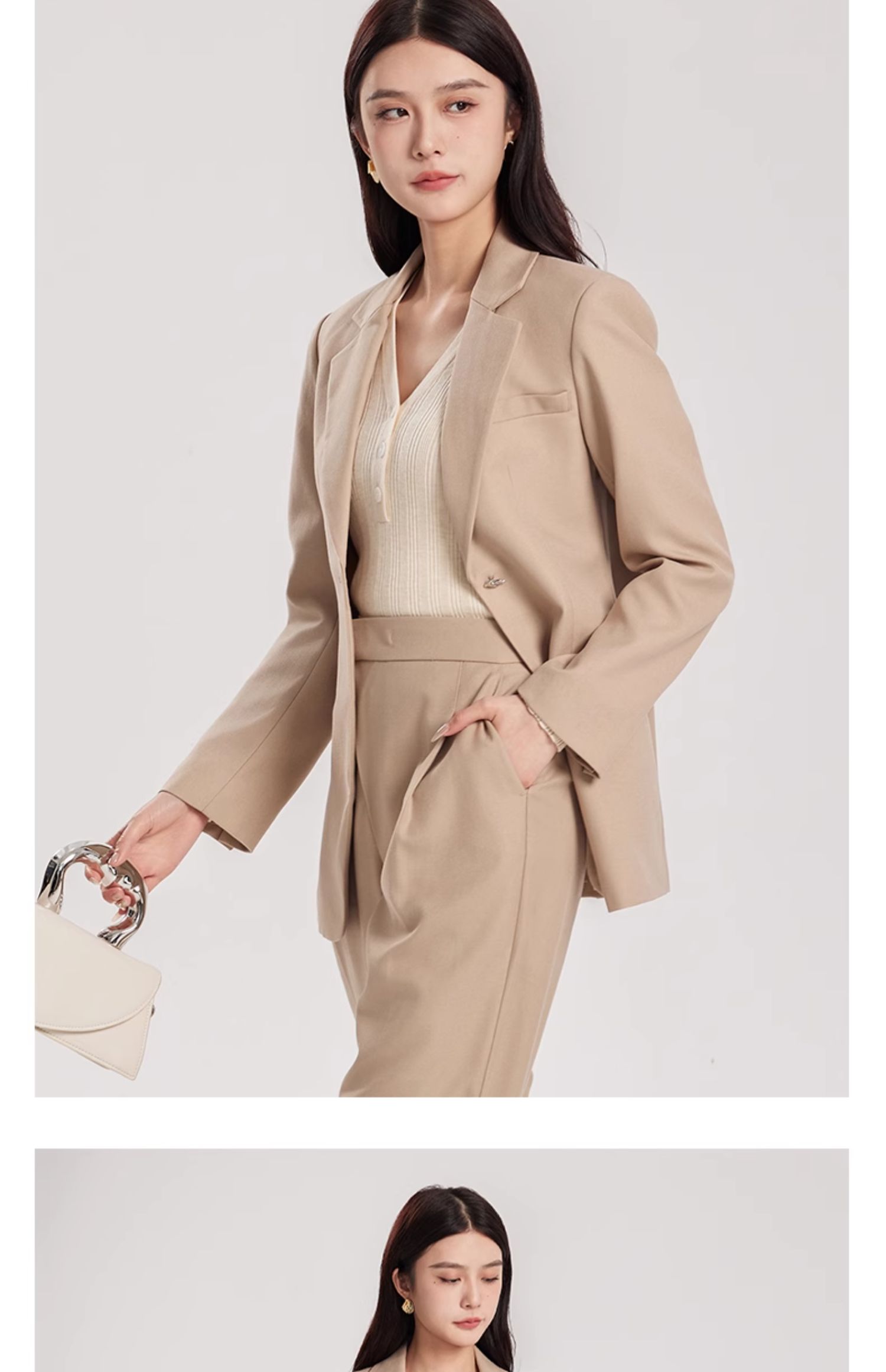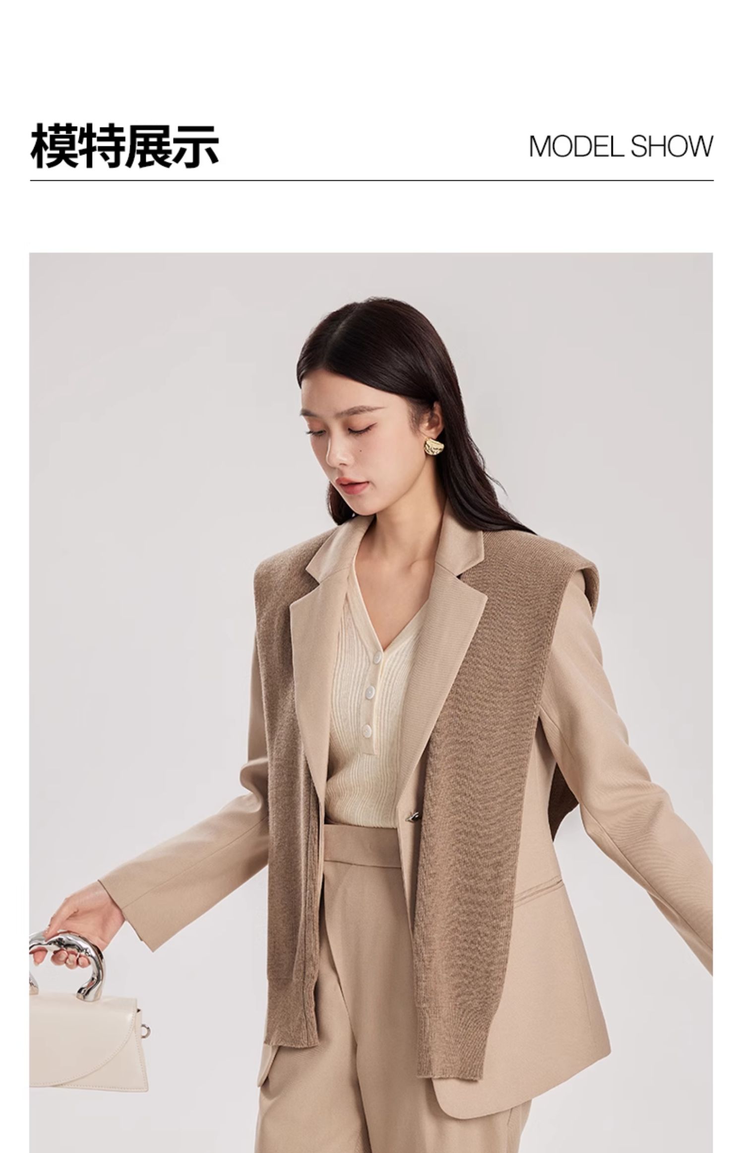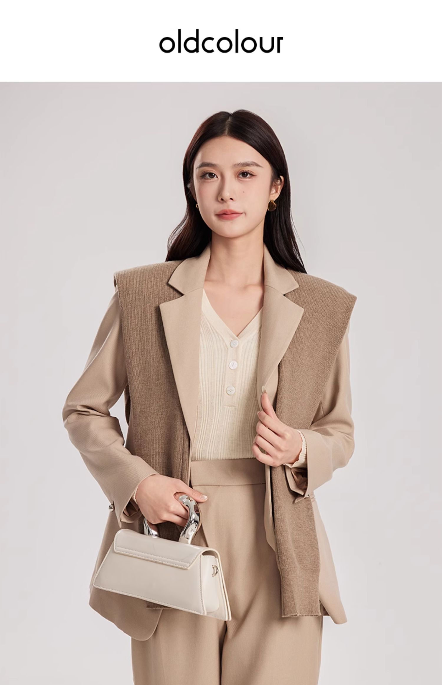 oldcolour春新款卡其色休闲简约职场通勤披肩西装外套女Q110417A1