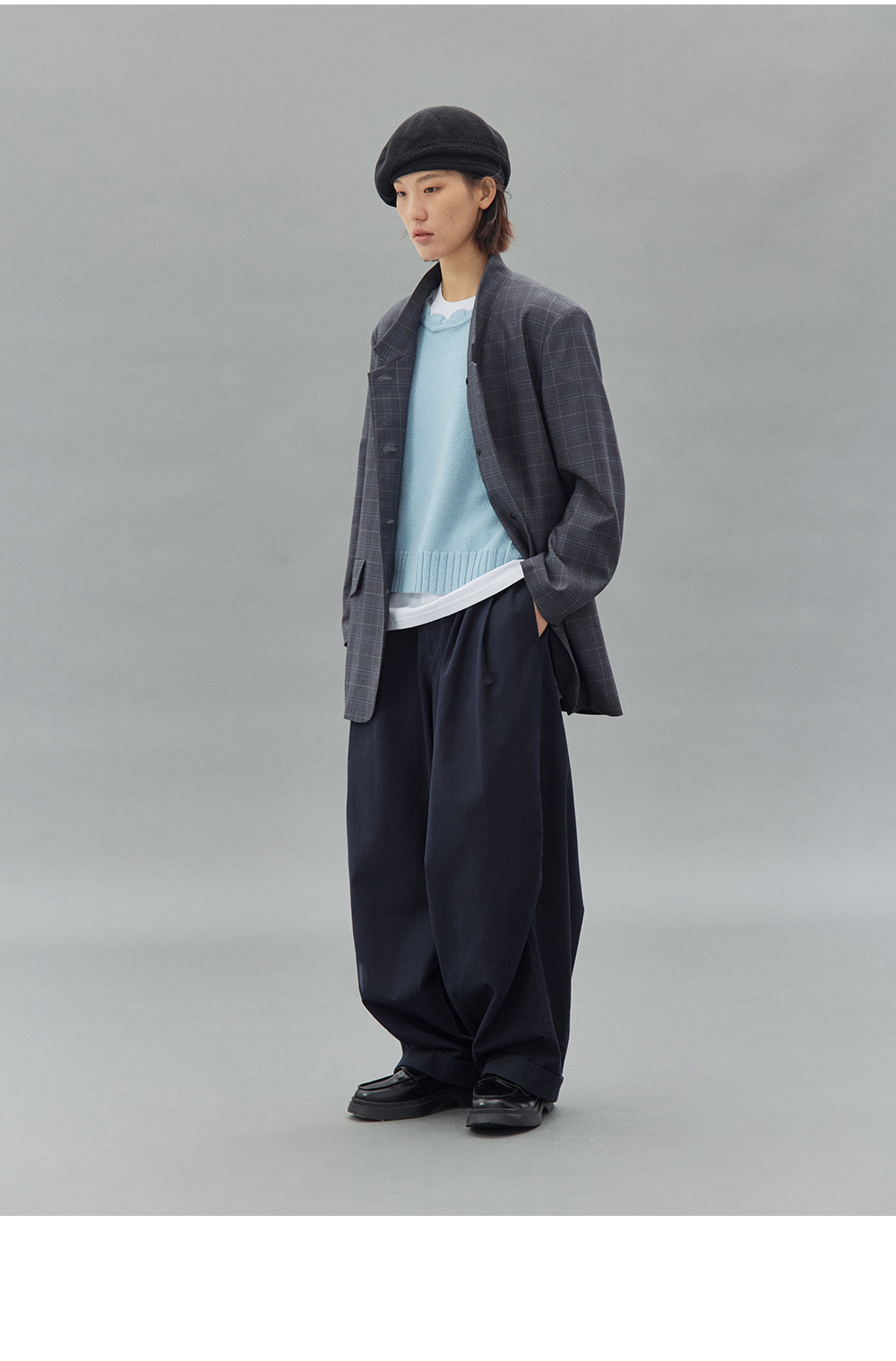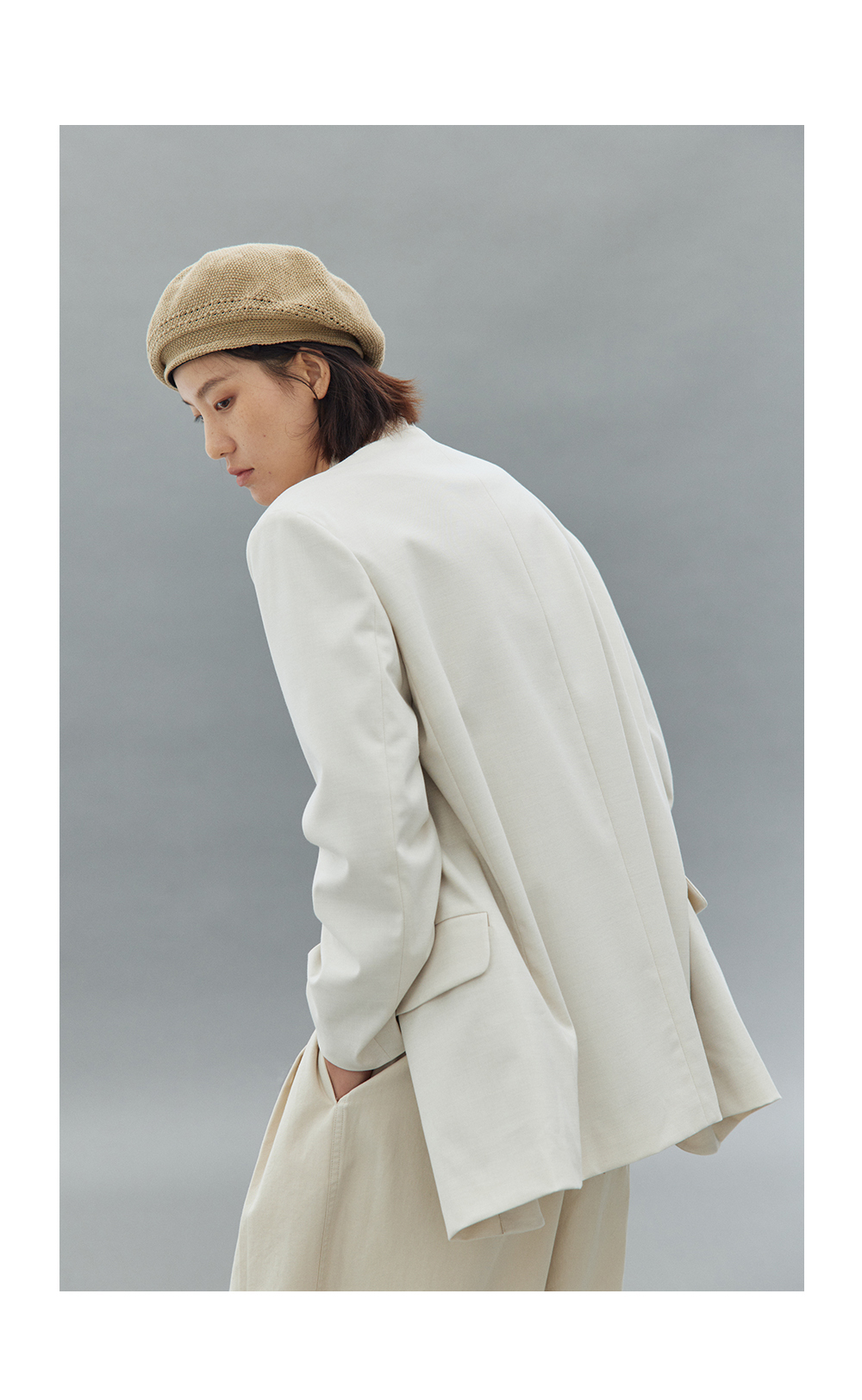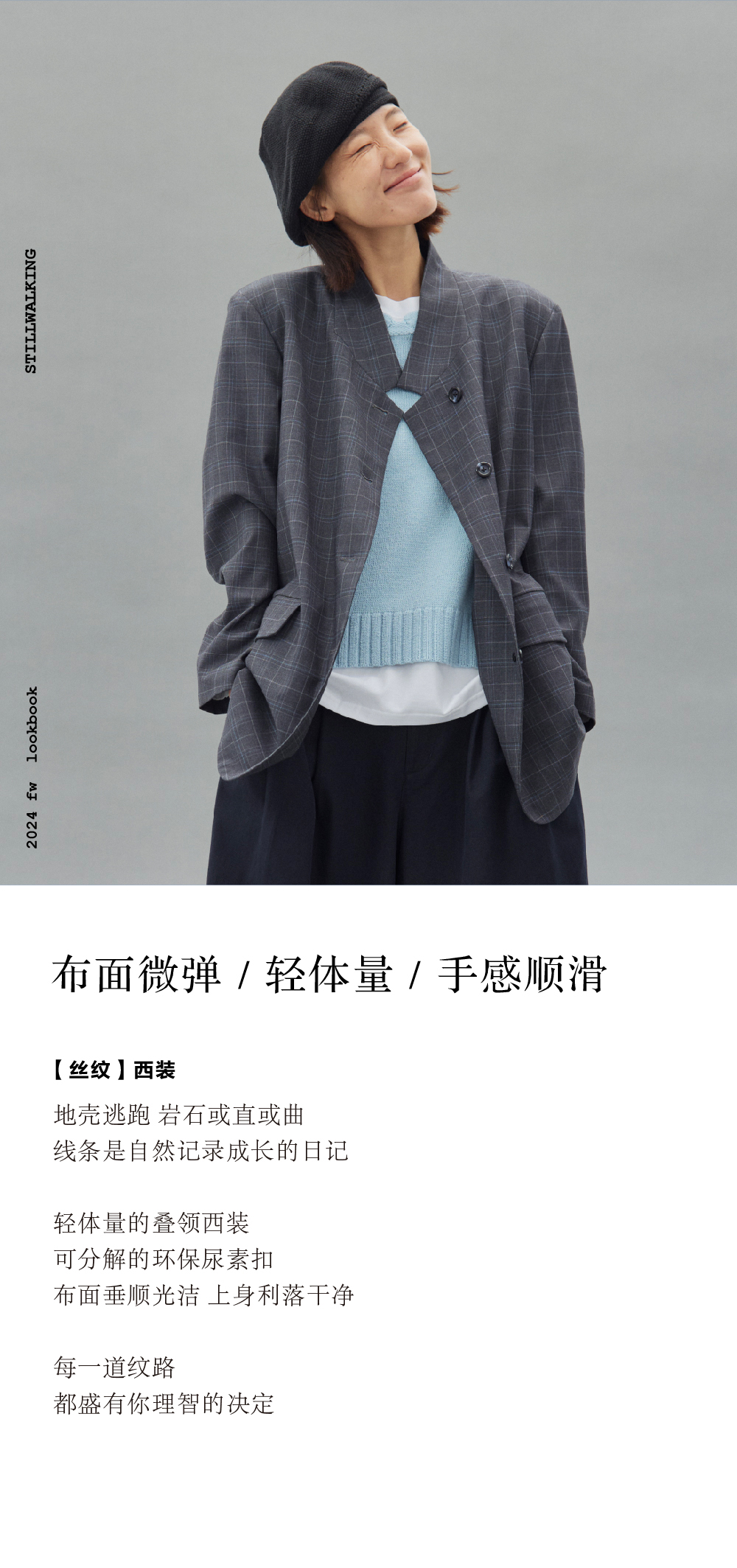 步履不停/4C22021C/微弹顺滑米色蓝格子西装外套上衣