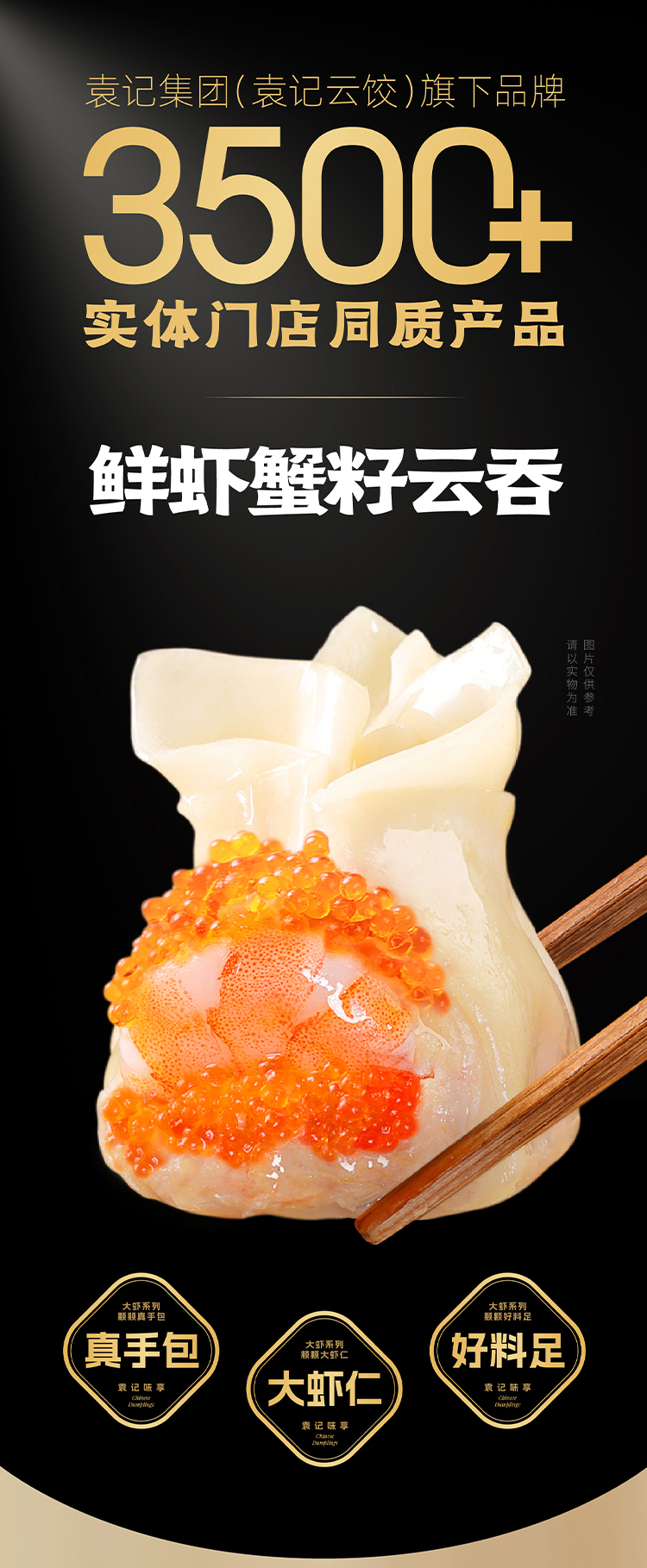 袁记鲜虾蟹籽云吞(210g/盒 10颗)生产日期: 11月